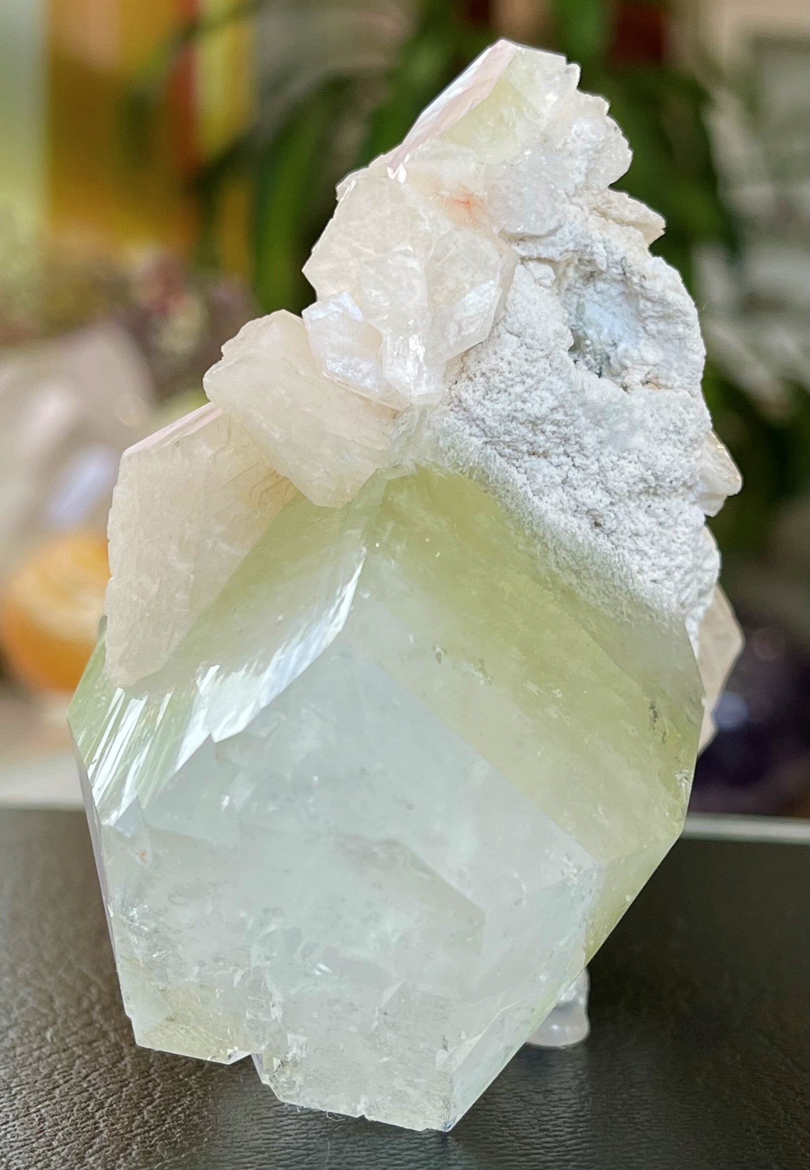 Apofylliet is ook een hele spirituele steen. Het helpt bij de geleiding van energieën en kan daarom heel goed gebruikt worden bij healings en energetisch werk zoals bijvoorbeeld reiki en quantum touch. Mediteren met deze steen geeft spirituele inzichten en kennis. Het werkt aardend bij astraal reizen.