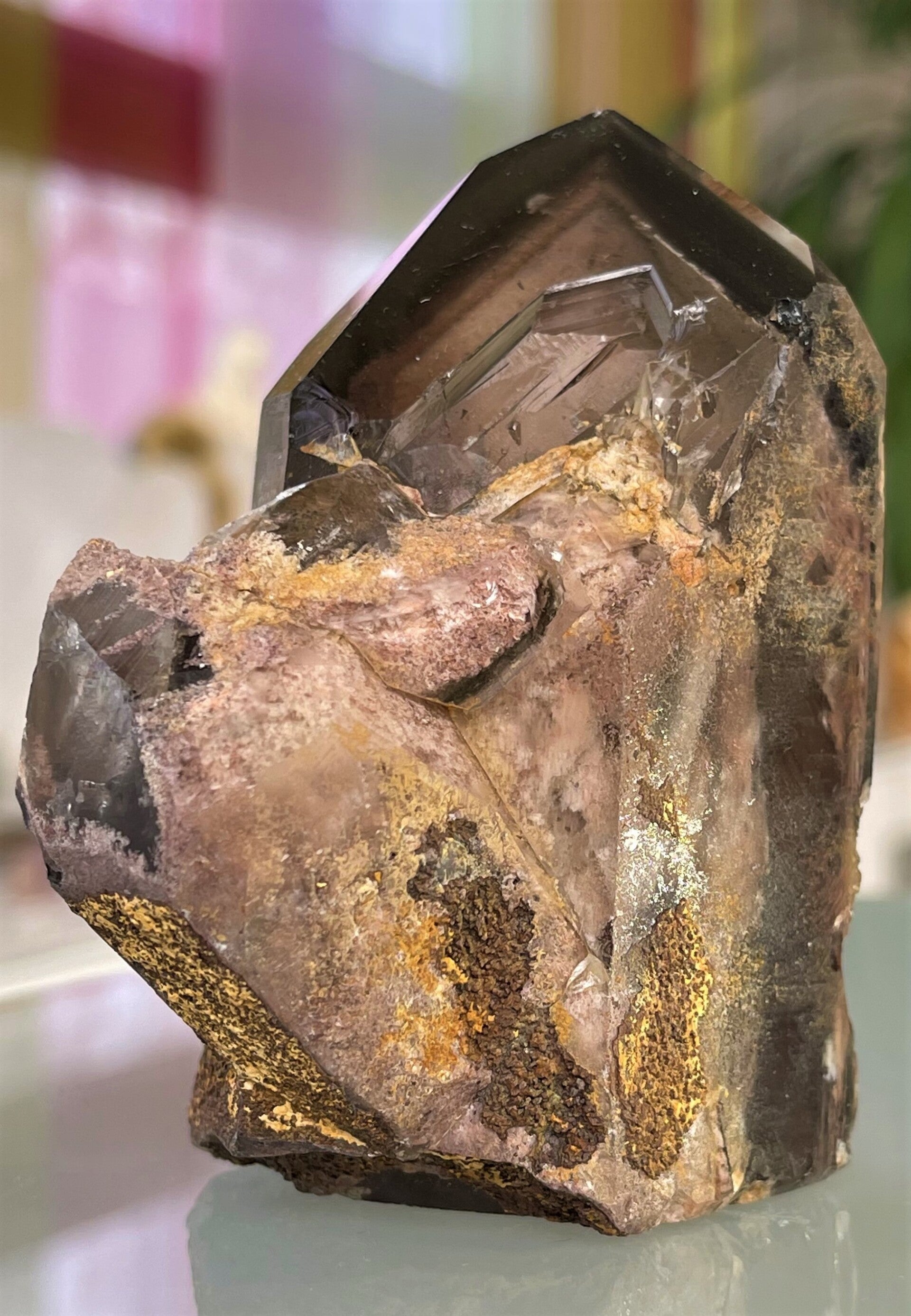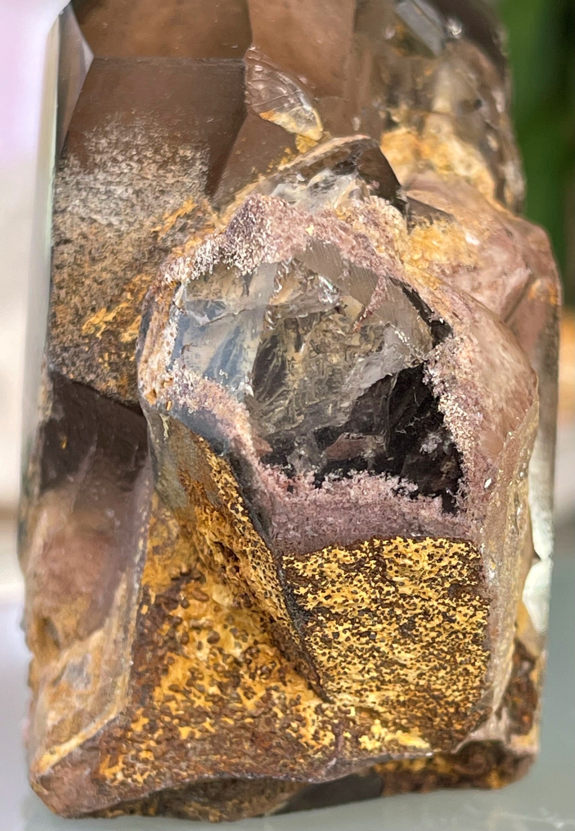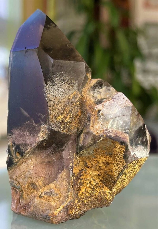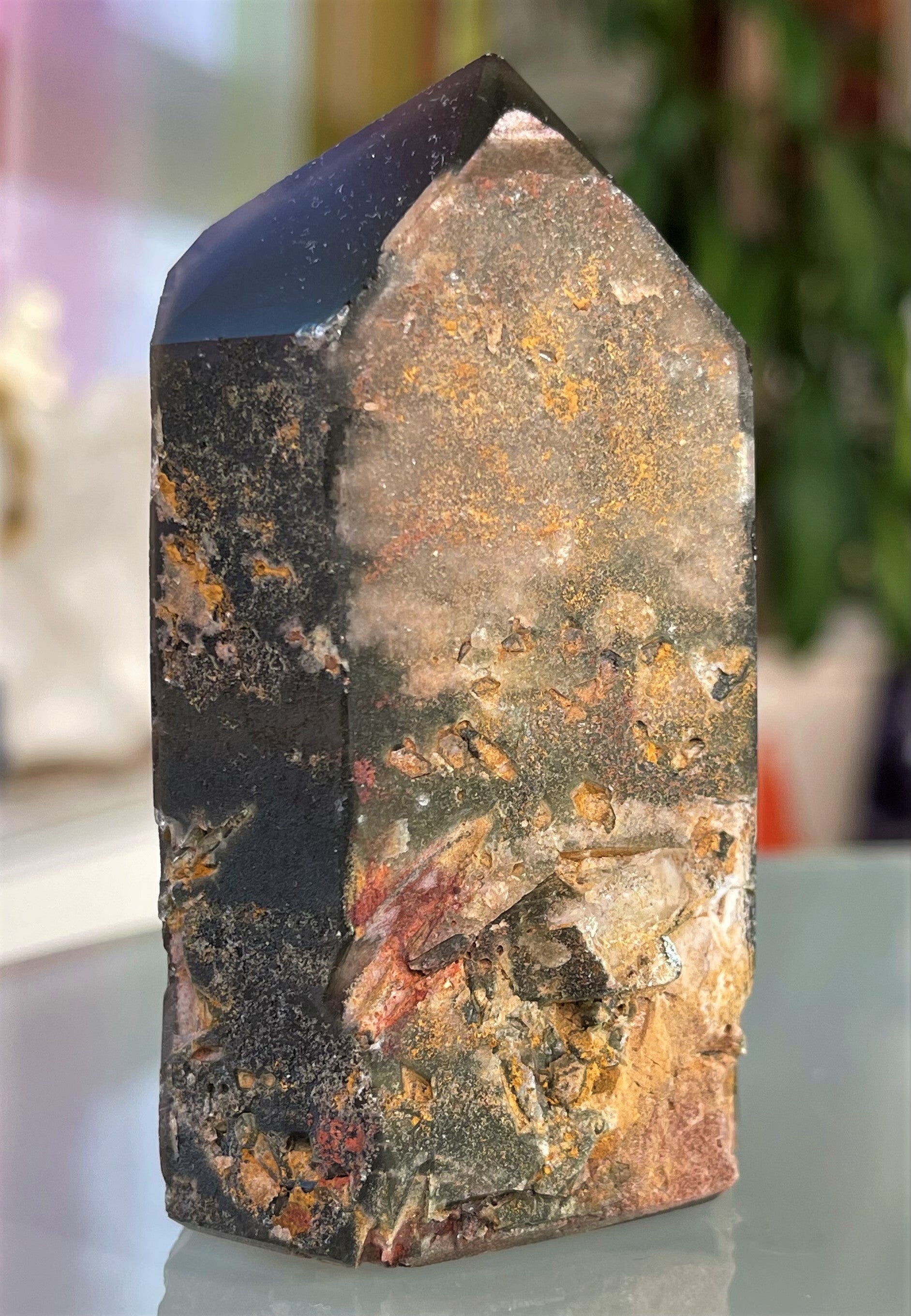 Lodolietkristal punt met fantoom, onderkant gepolijst zodat het kan staan, mooie punt, medium tot groot