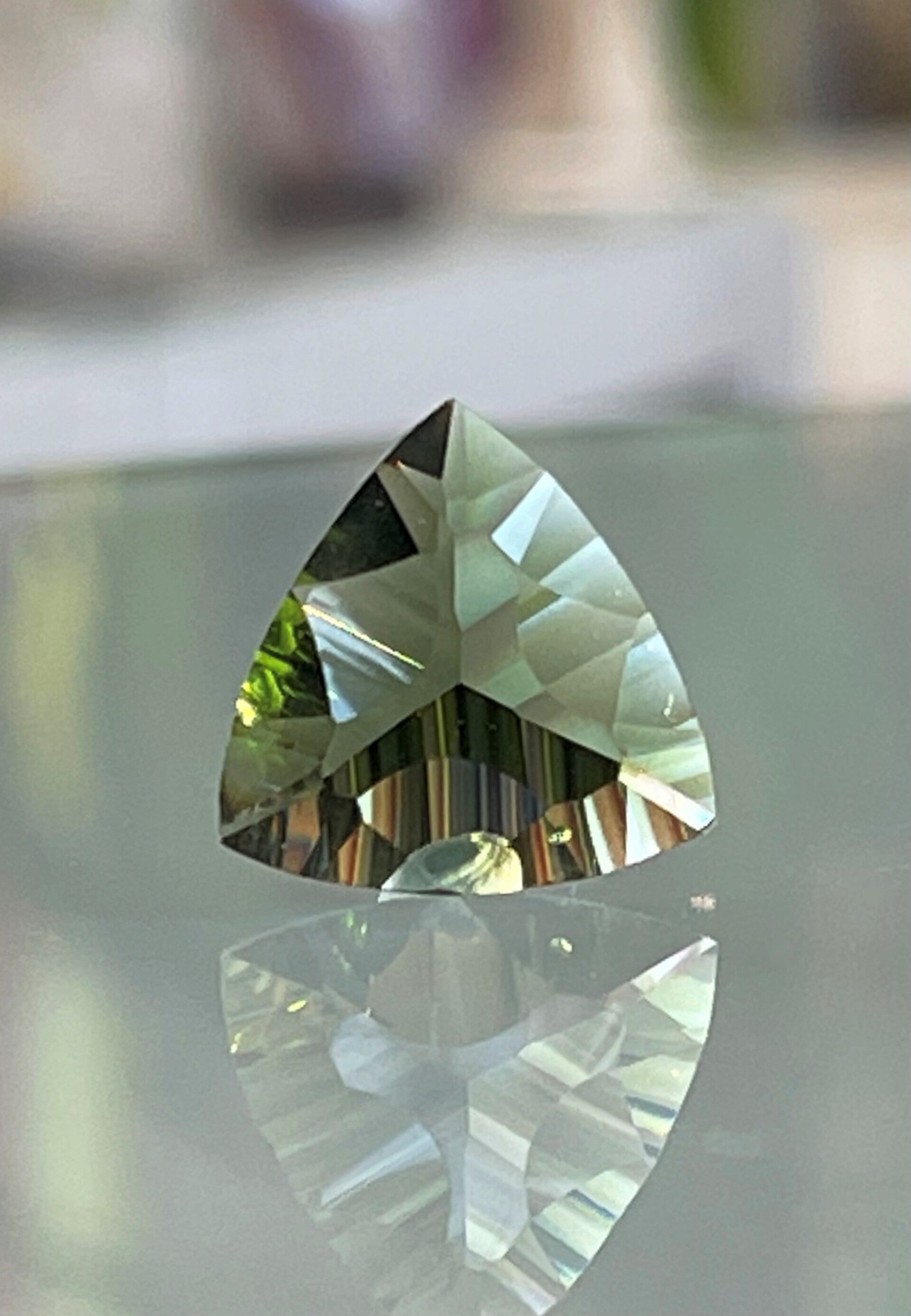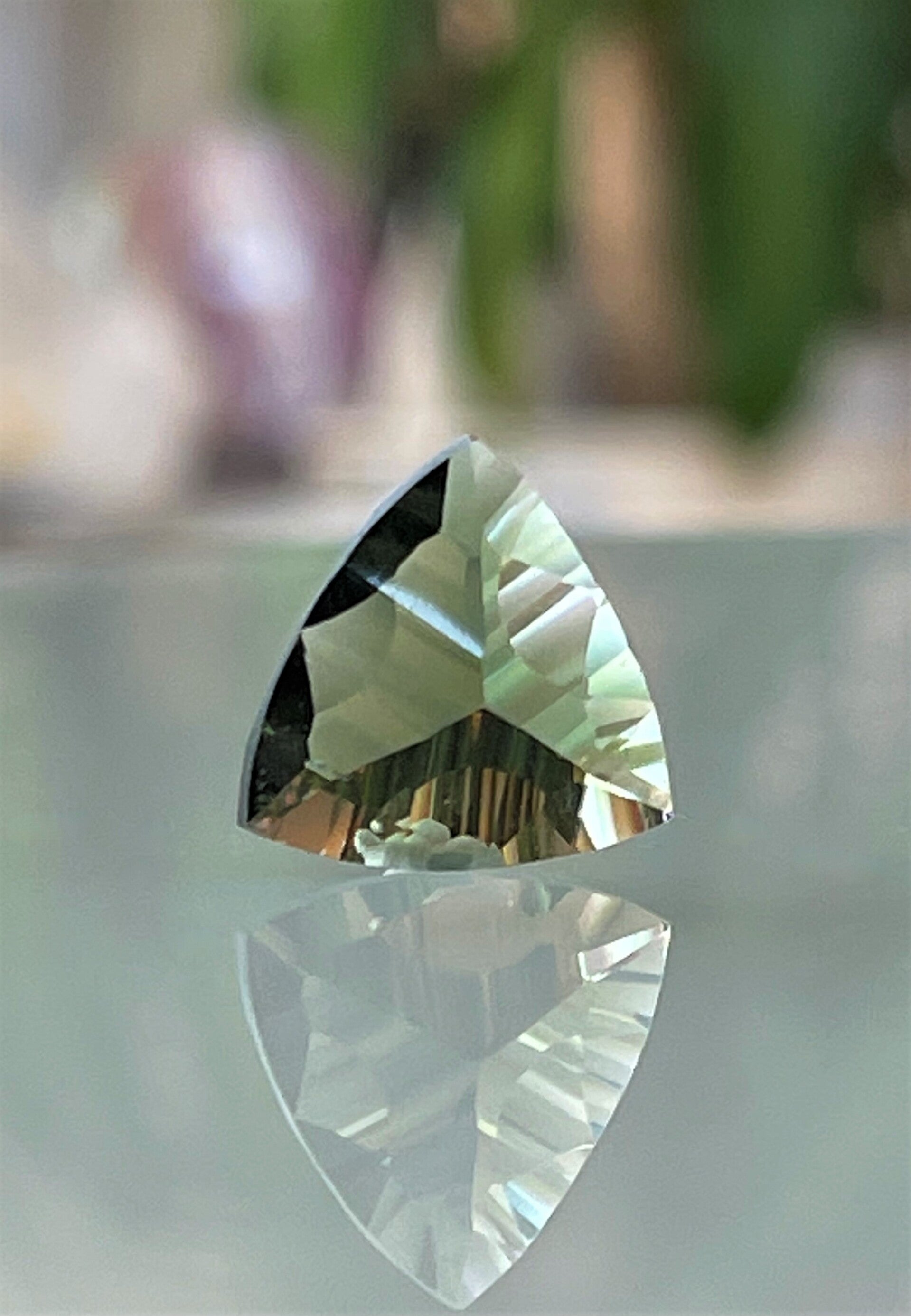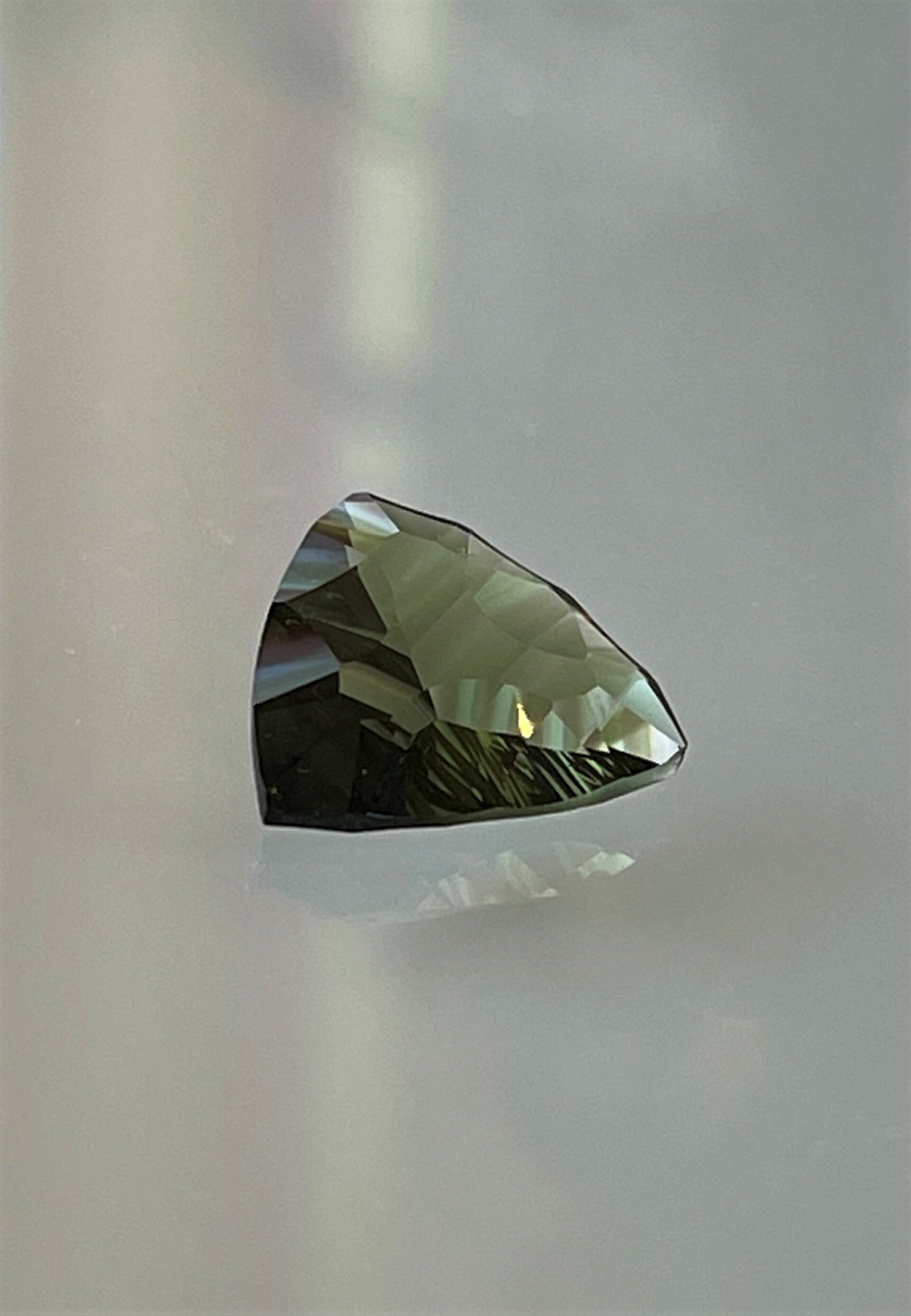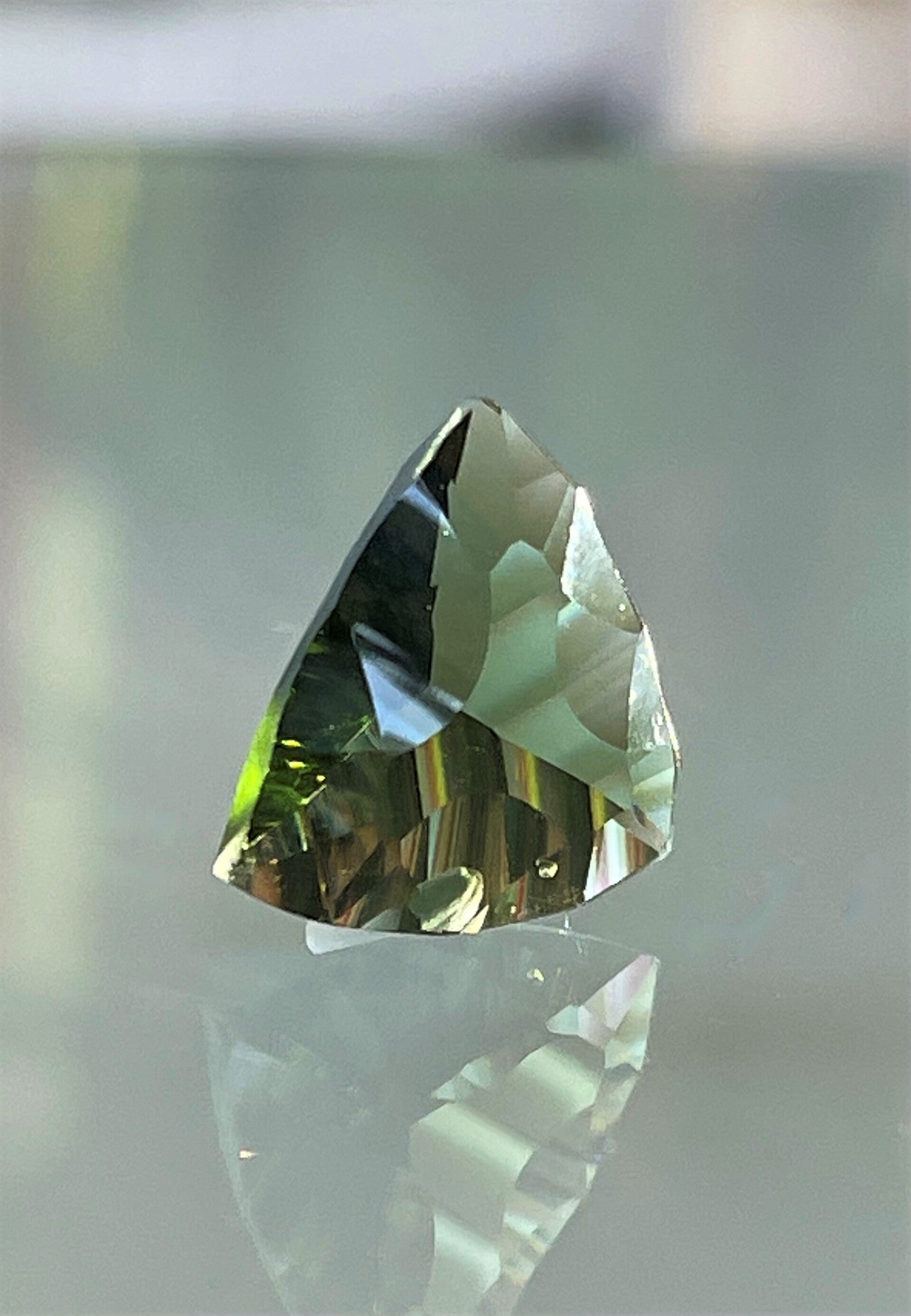 Prachtige Moldaviet edelsteen trillion facet geslepen driehoek, medium uit Zuid-Tsjechië