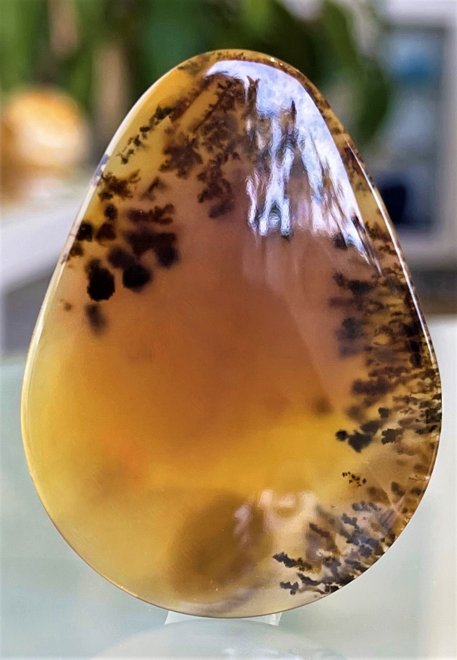 Dendriet Agaat edelsteen cabochon druppel uit Rusland, groot
