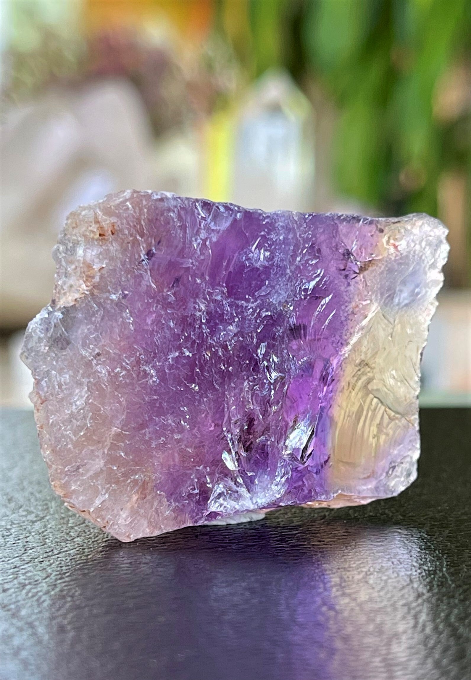 Ametrien bestaat uit een combinatie van Amethist en Citrien en verenigt de eigenschappen van deze twee stenen in zich. De opbeurende en verwarmende energie van Citrien en de beschermende en zuiverende werking van Amethist. Geeft innerlijke rust en gelatenheid.