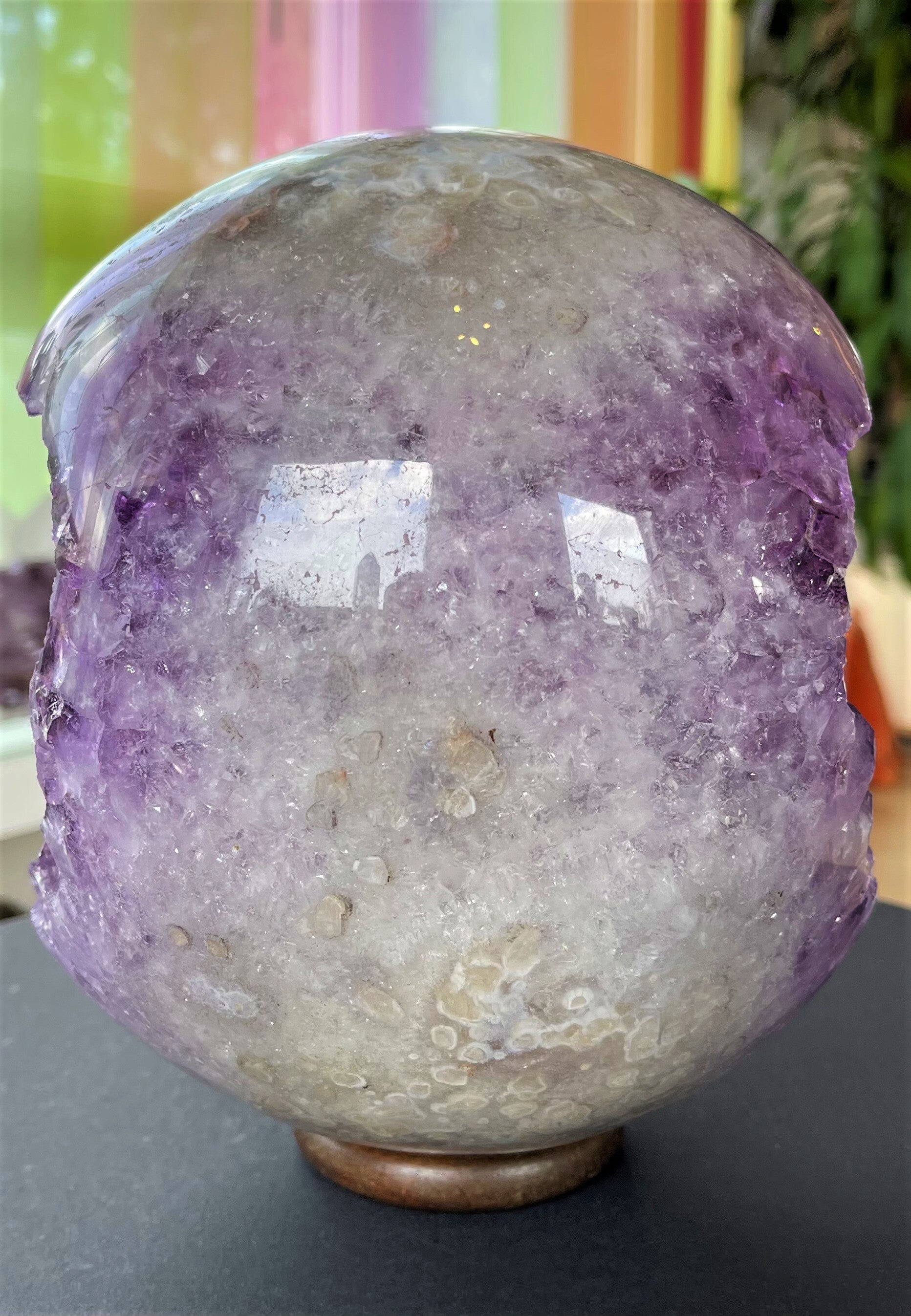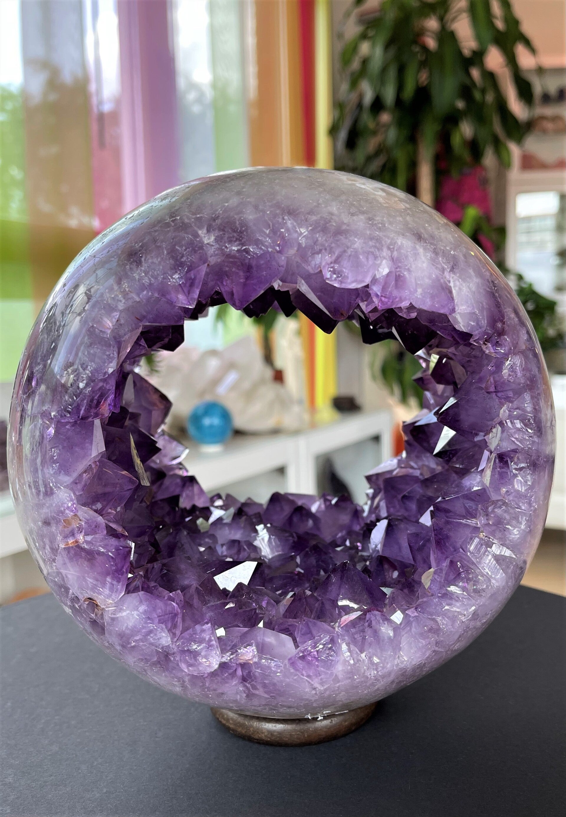Amethist bol, mooie open bol aan twee zijden open, in de vorm van een ring, heel bijzonder, groot