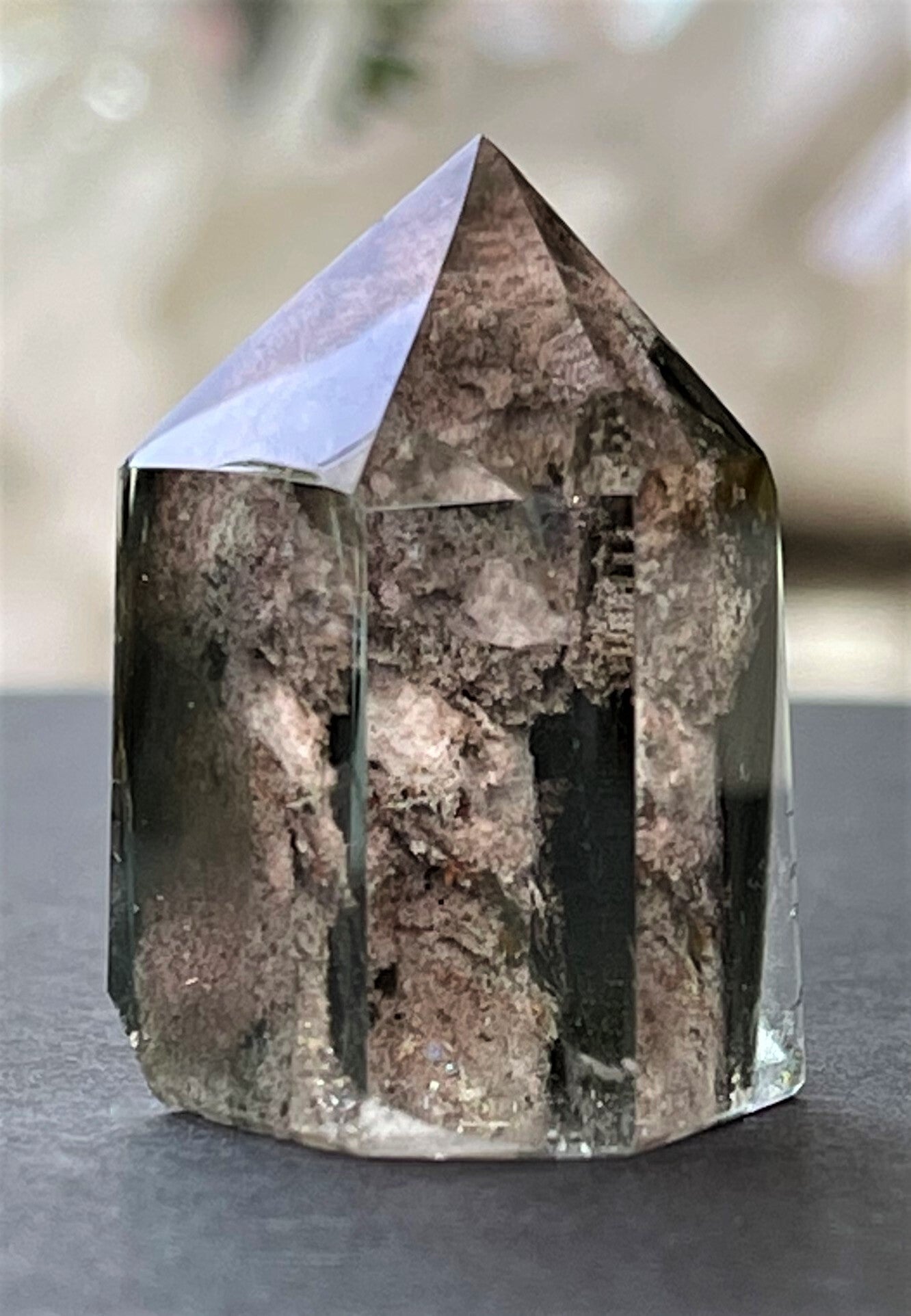 Mooi helder Lodolietkristal puntje, gepolijst, klein