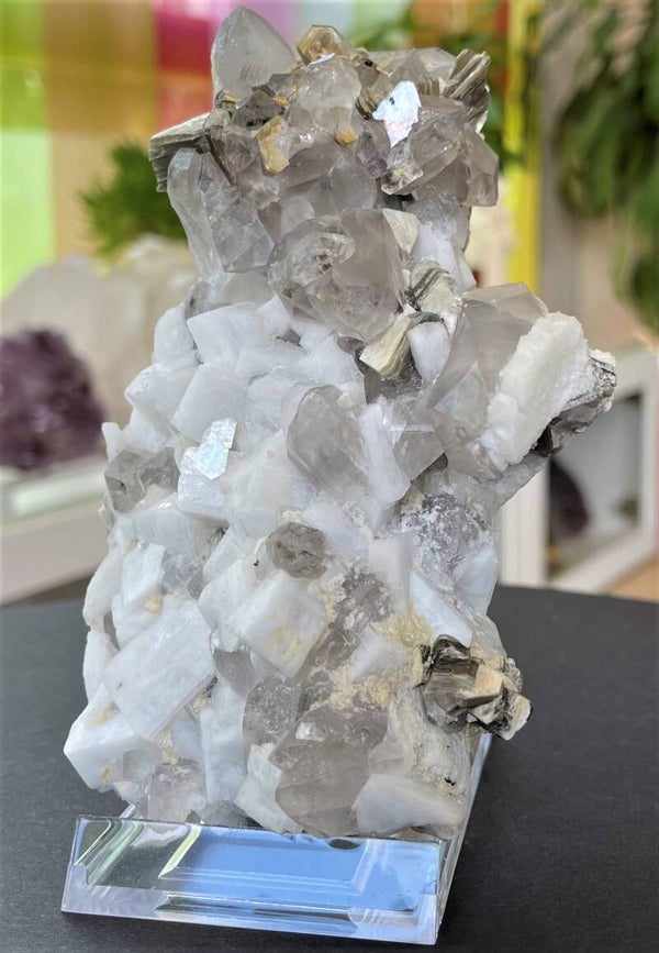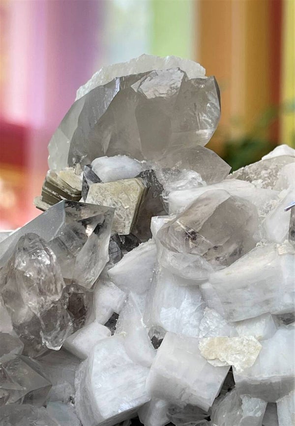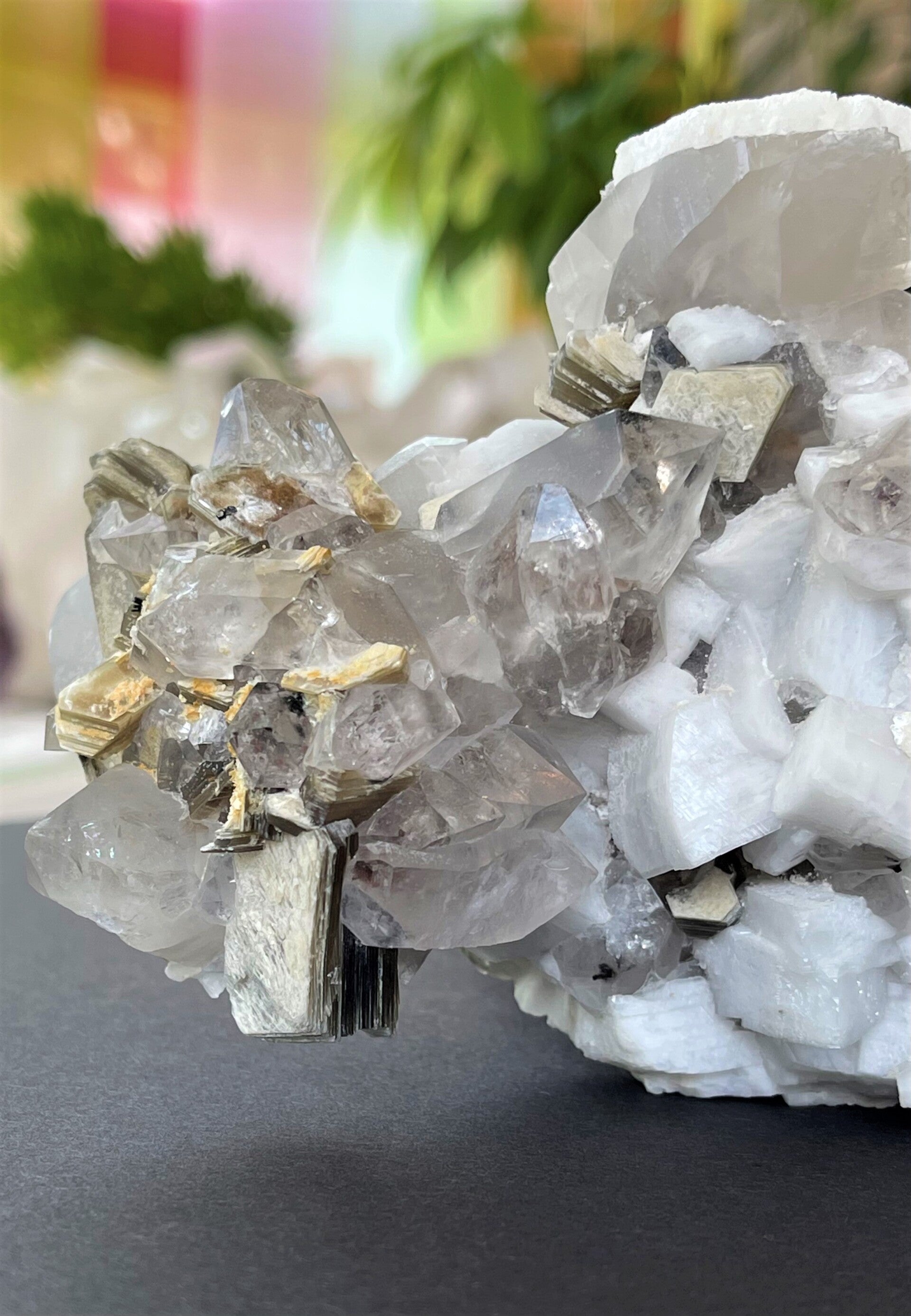 Ruw stukje Bergkristal Albiet en mica cluster uit India, groot