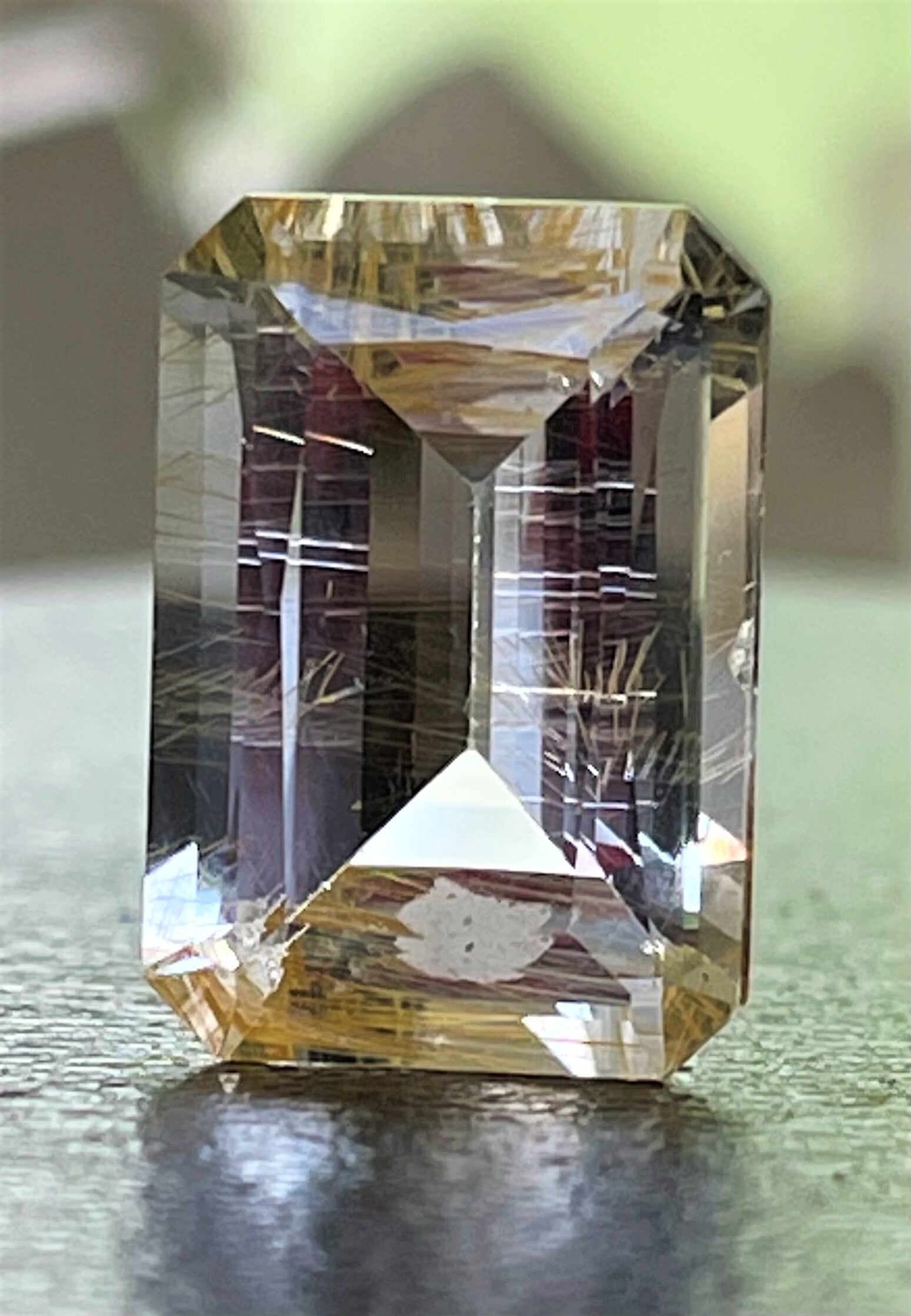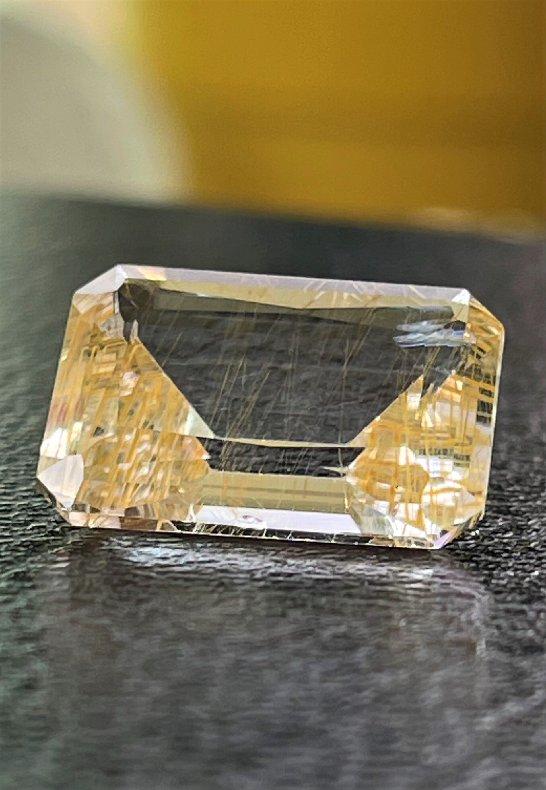Gouden Rutielkwarts edelsteen facet geslepen rechthoek (emerald- of smaragdvorm octagon geslepen), groot