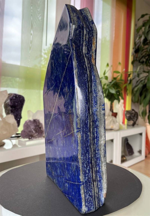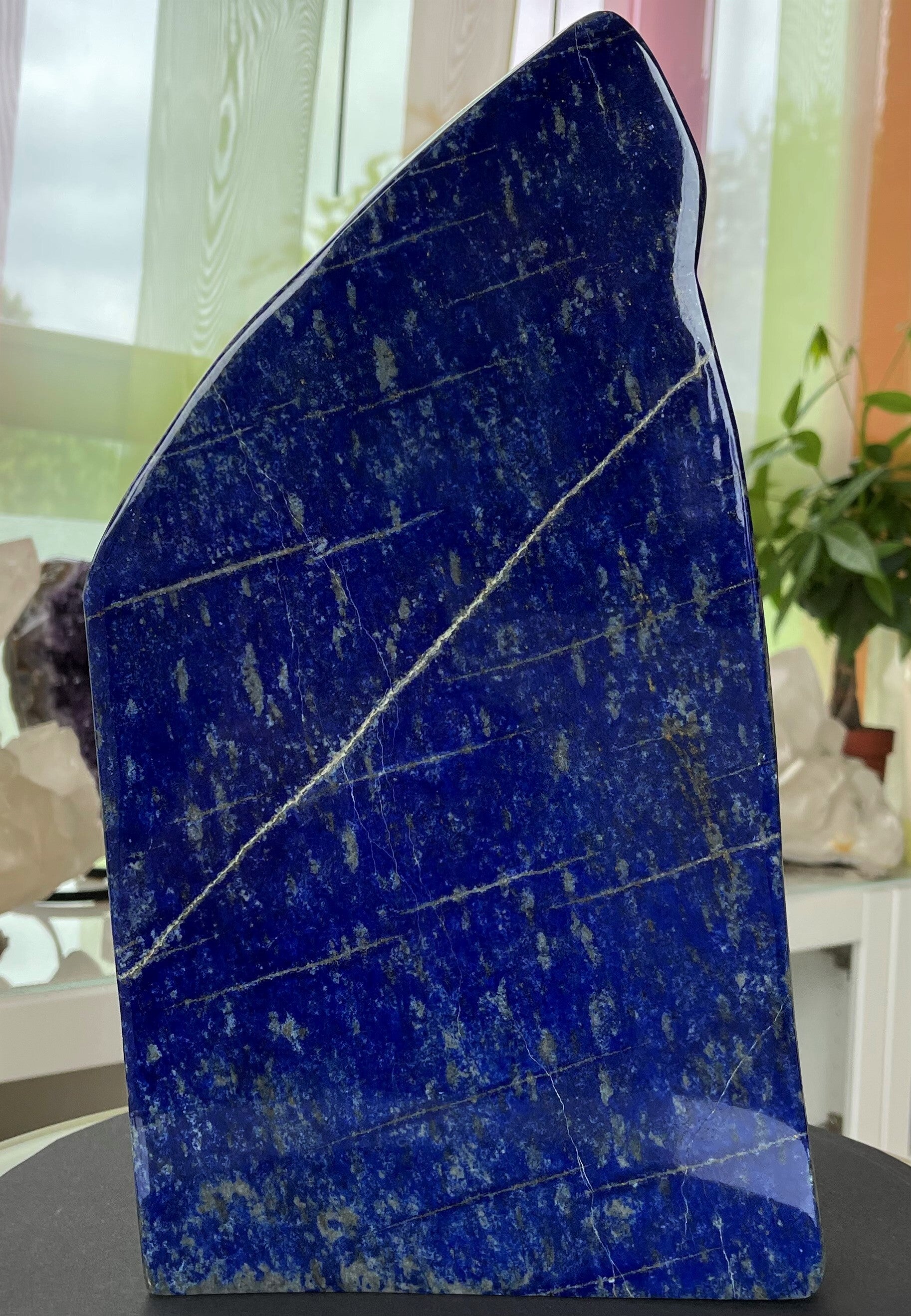 Stuk Lapis Lazuli met Pyriet, gepolijst, heel groot plat stuk, kan staan, mooie kwaliteit