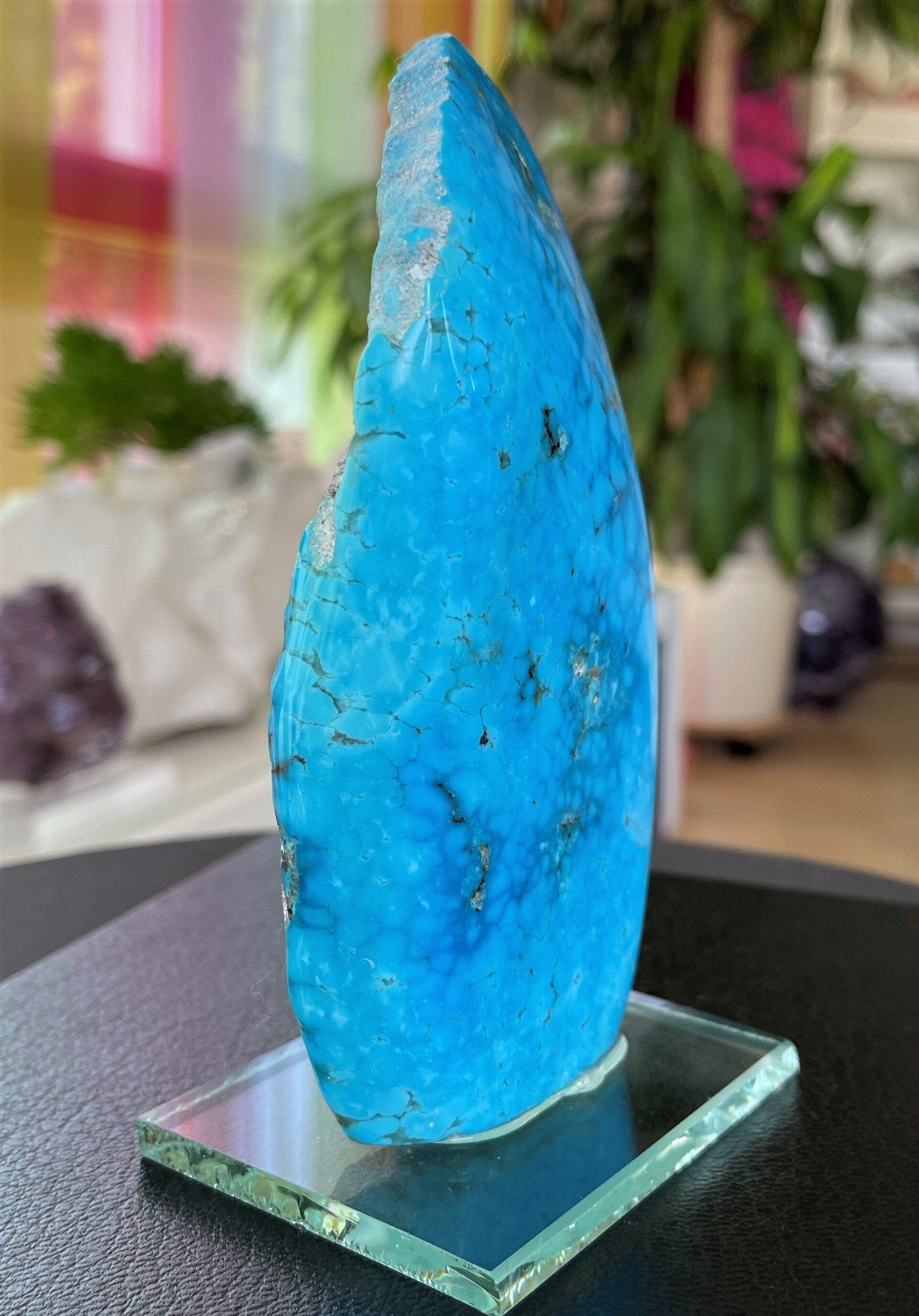 Ruw groot plat stuk Turkoois uit Arizona aan één zijde gepolijst, de kleur is in werkelijkheid mooier turquoise-blauw dan op de foto. Uniek stuk.