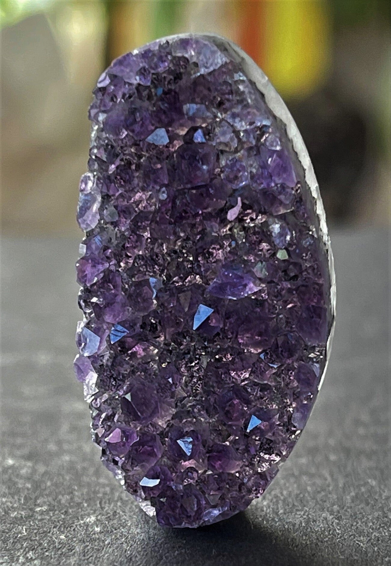 Amethist heeft een beschermende en zuiverende werking. De steen bevordert zelfinzicht en helpt je om eerlijk te zijn naar jezelf toe over gedrag dat schadelijk kan zijn en niet in dienst is van je hoogste zelf. Het helpt je bijvoorbeeld om verslavingen te onderkennen en aan te pakken.