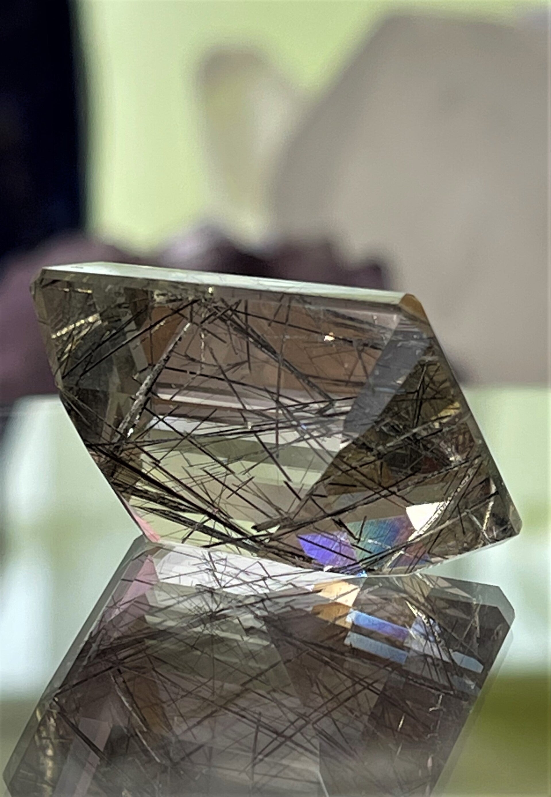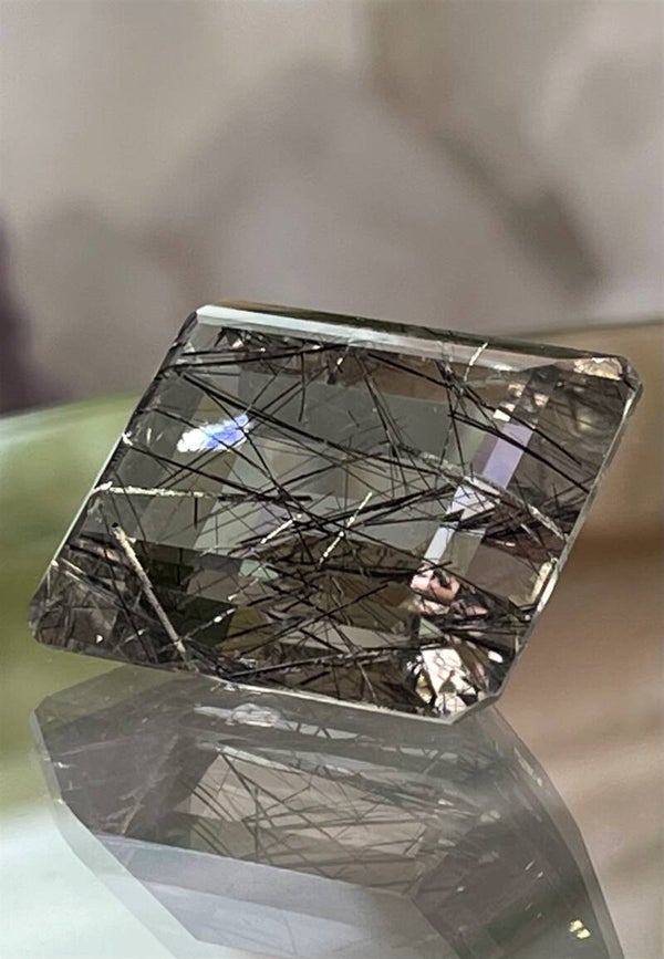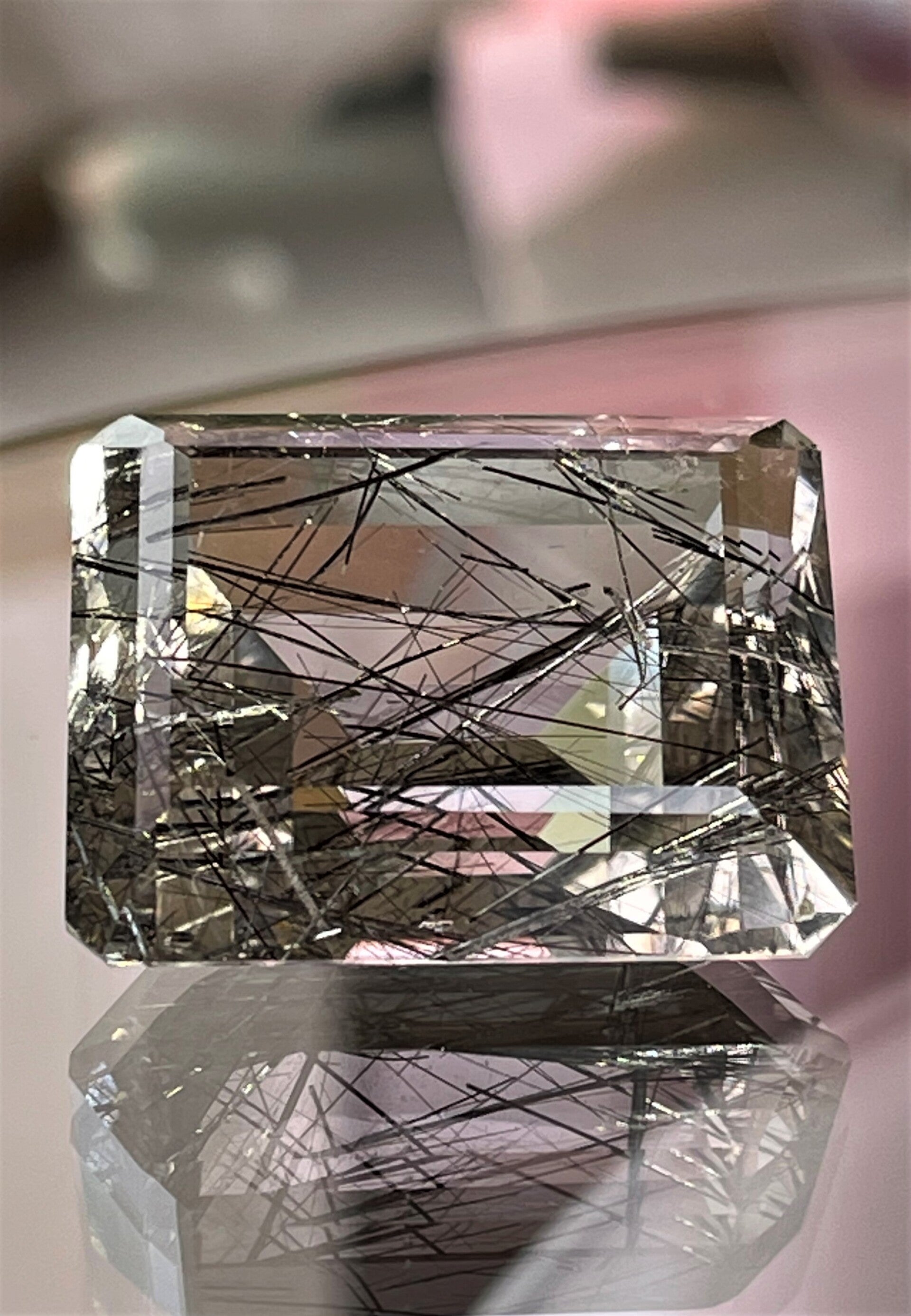 Toermalijnkwarts edelsteen facet geslepen rechthoekig, groot