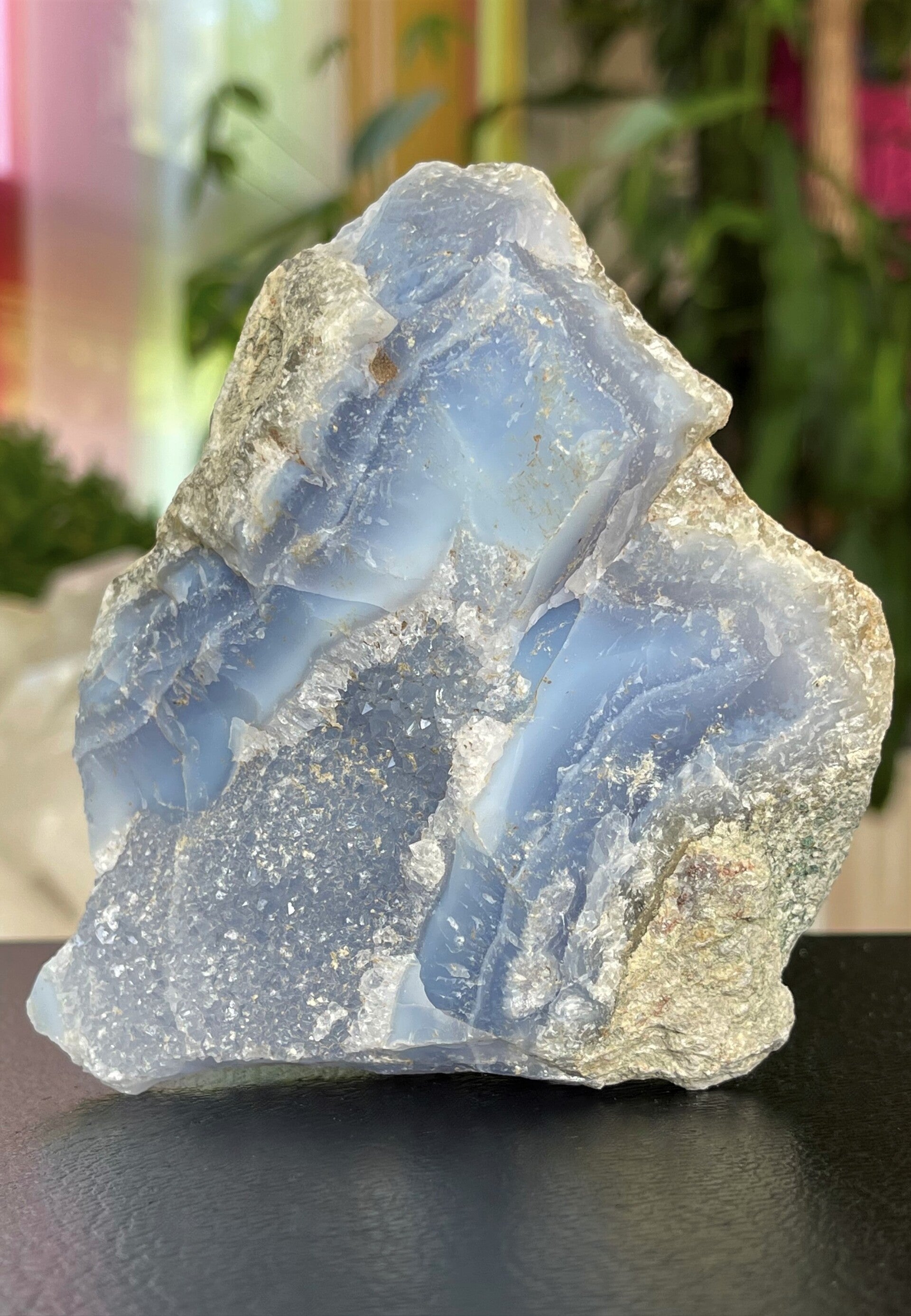 Ruw stukje Chalcedoon met kristalvorming, medium