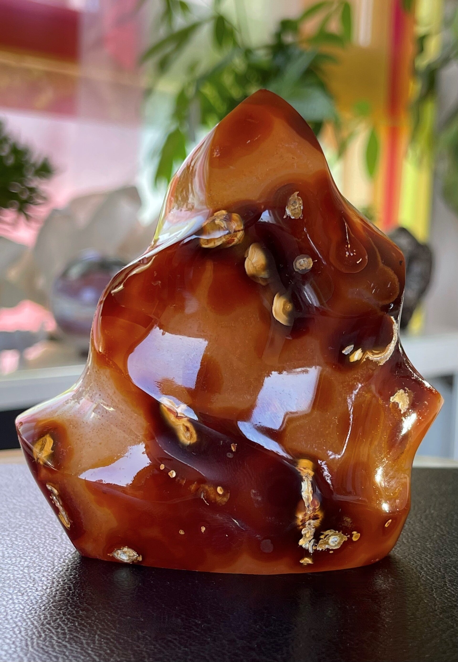 Carneool vlam free form sculptuur, staand