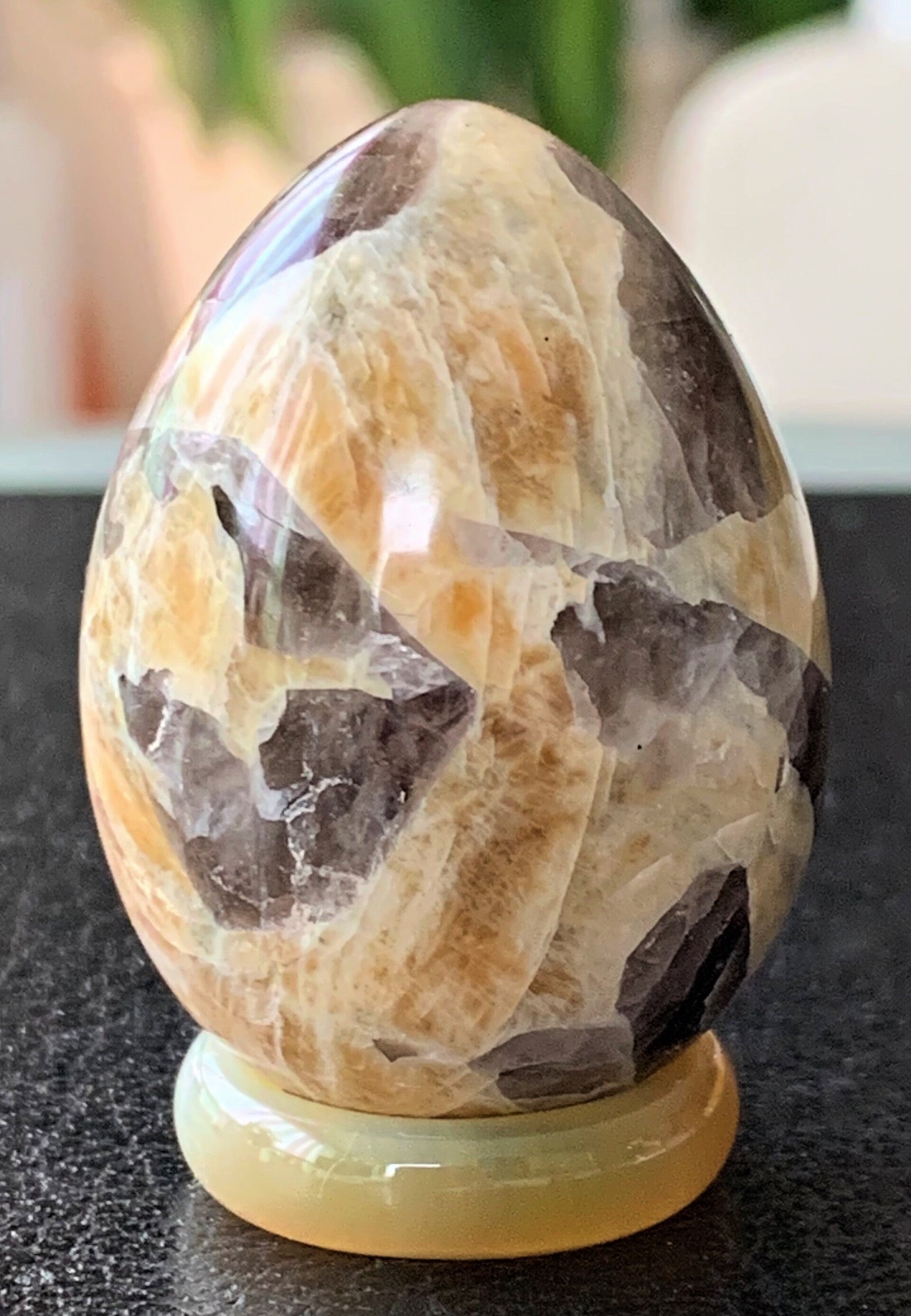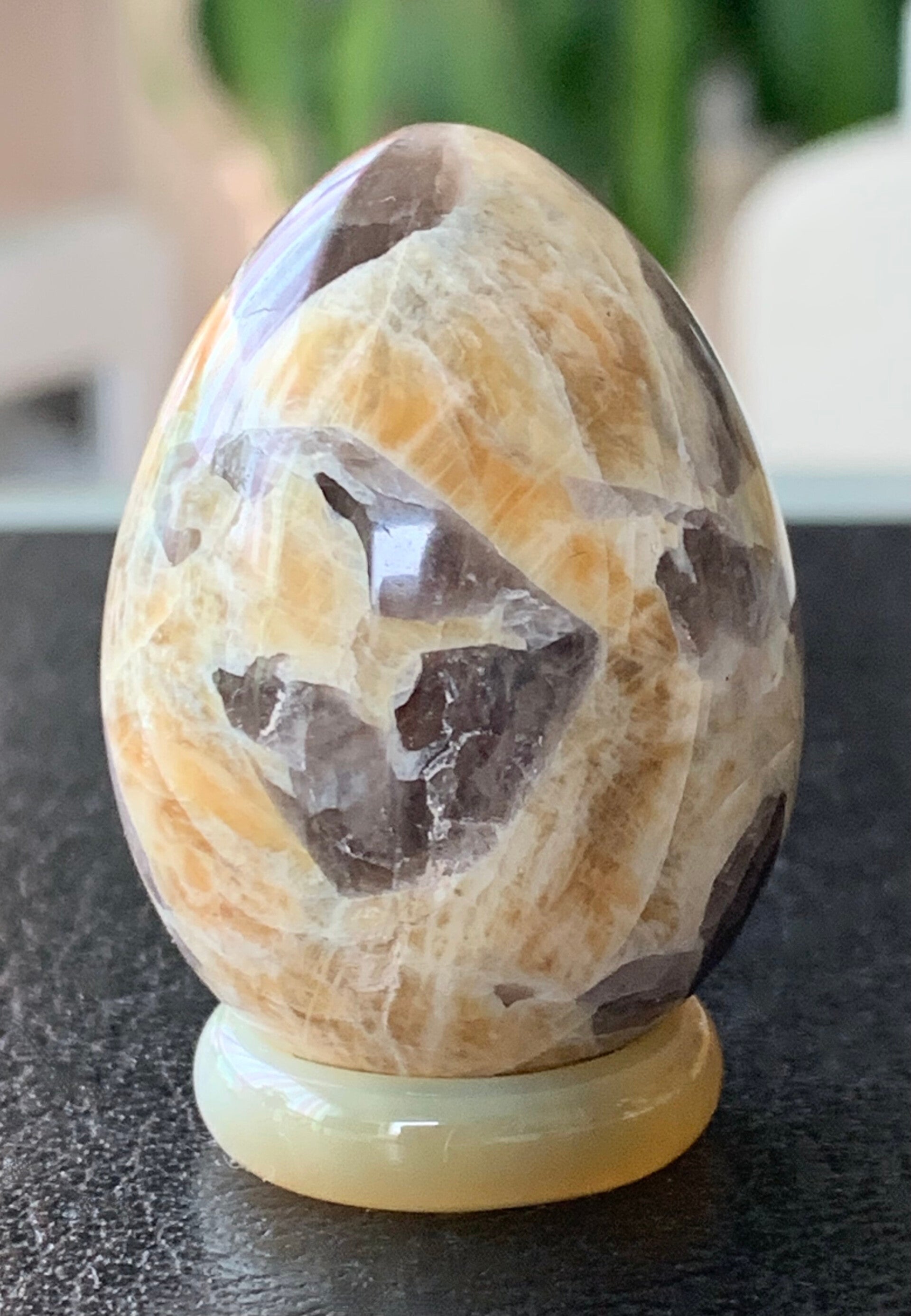 Zebra Veldspaat ei met (Rook)kwarts, klein tot medium
