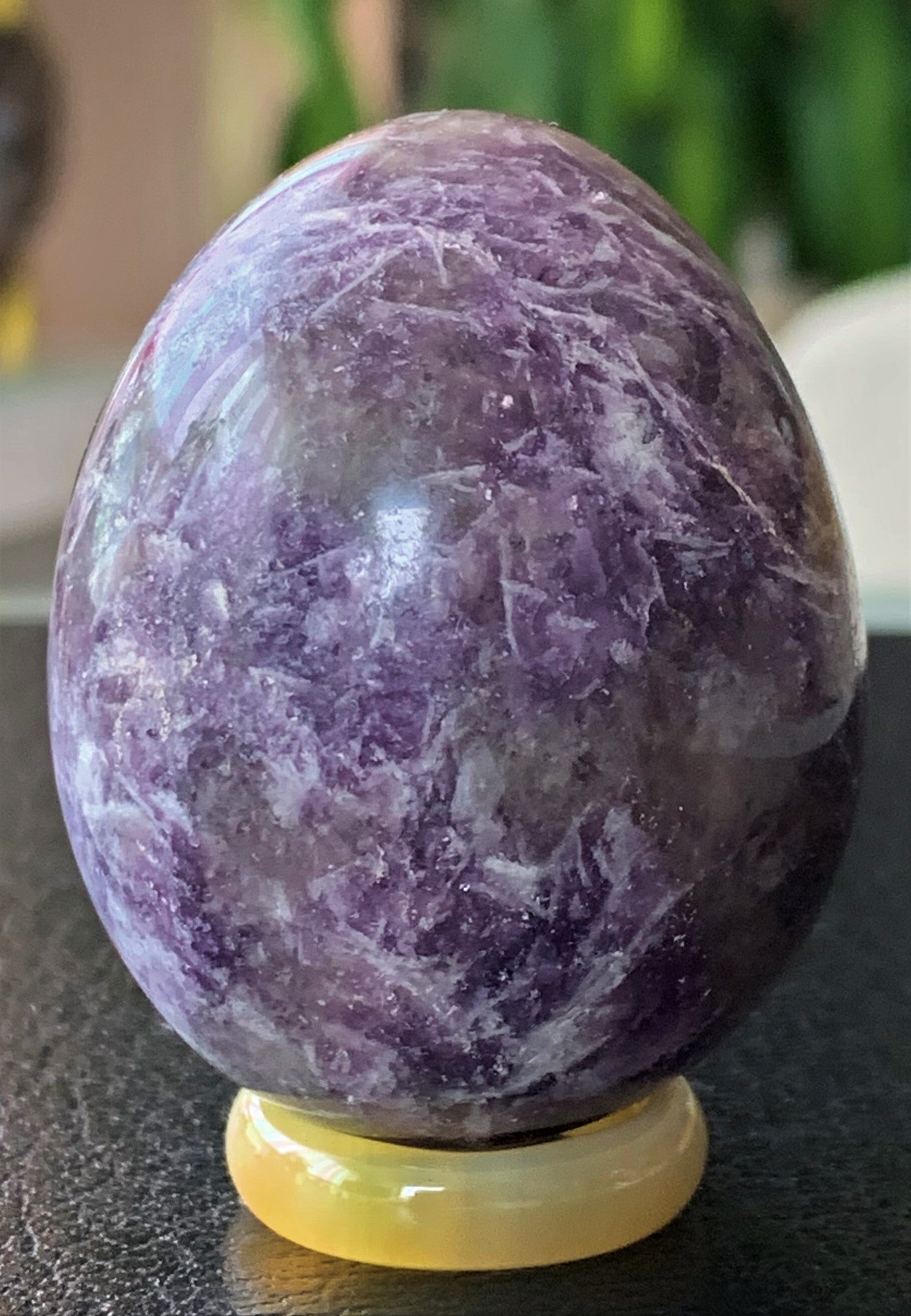 Lepidoliet ei, medium, met kristallen delen in de steen