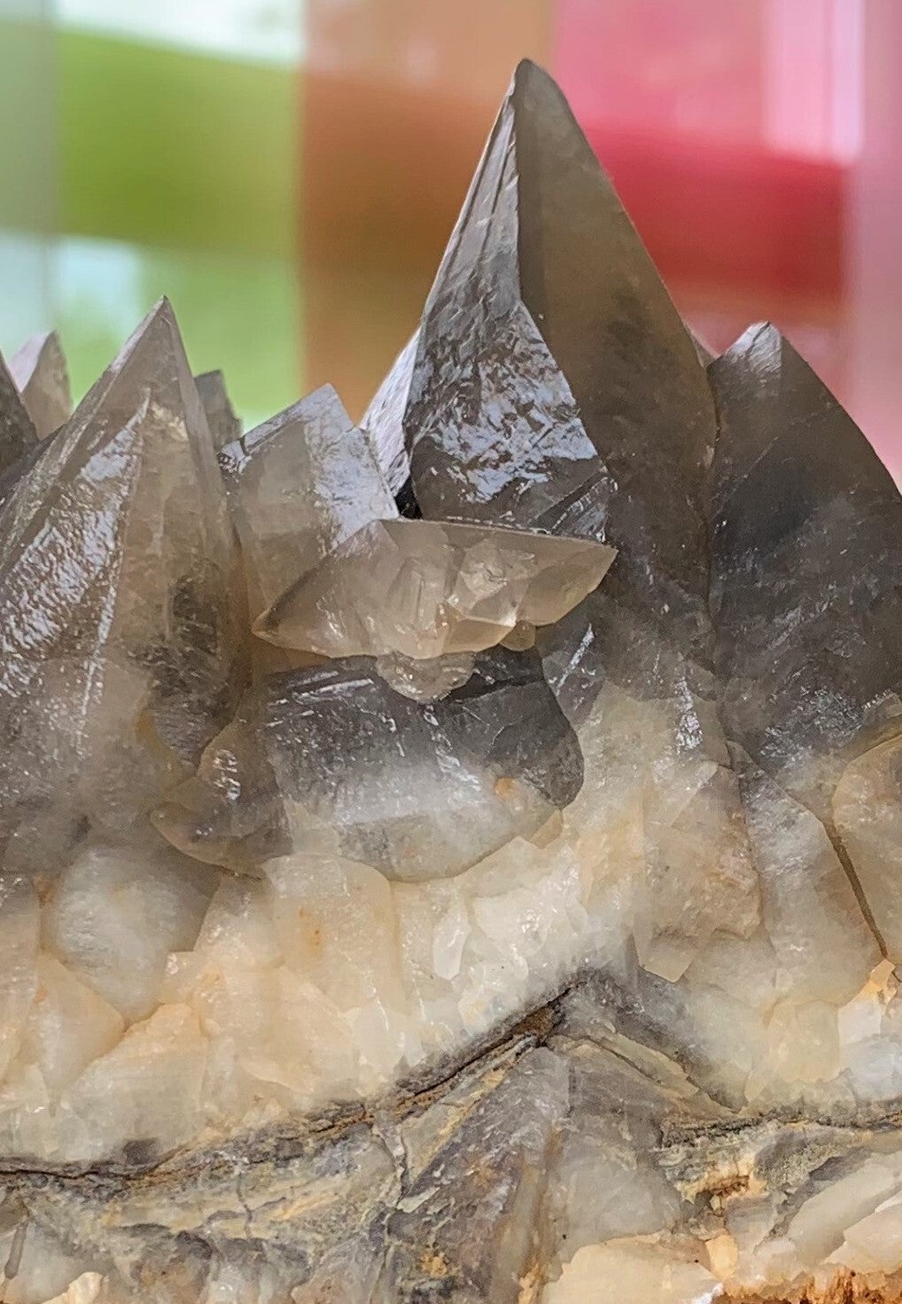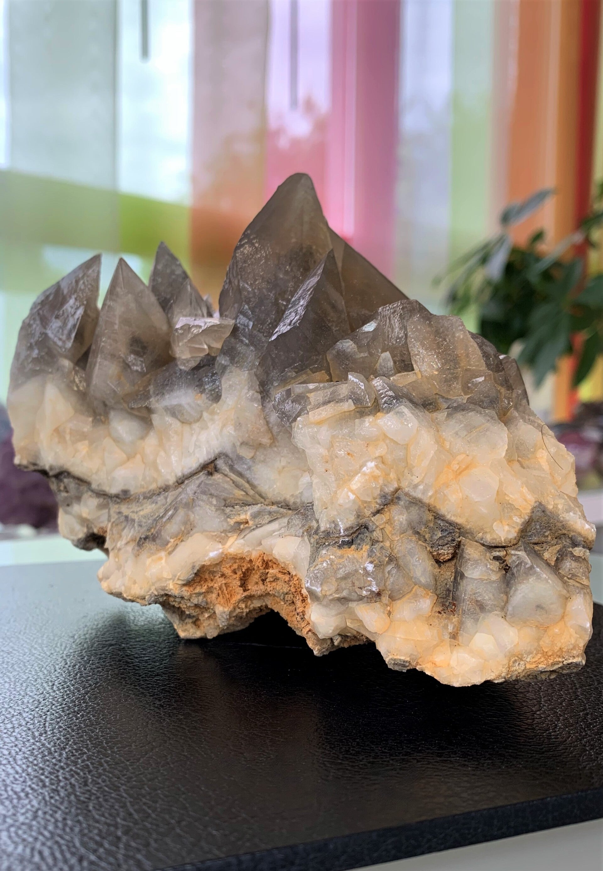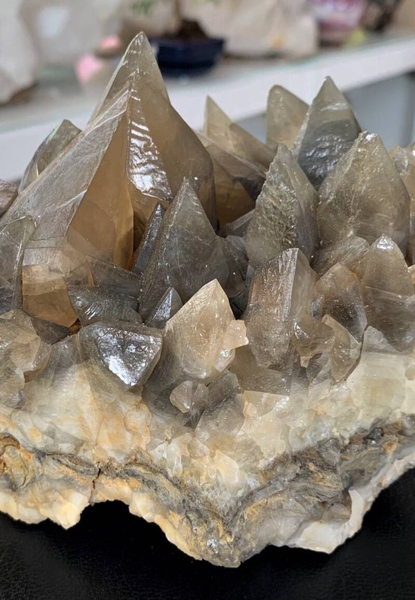 Ruw stuk grijze Calciet cluster met punten uit Marokko, groot