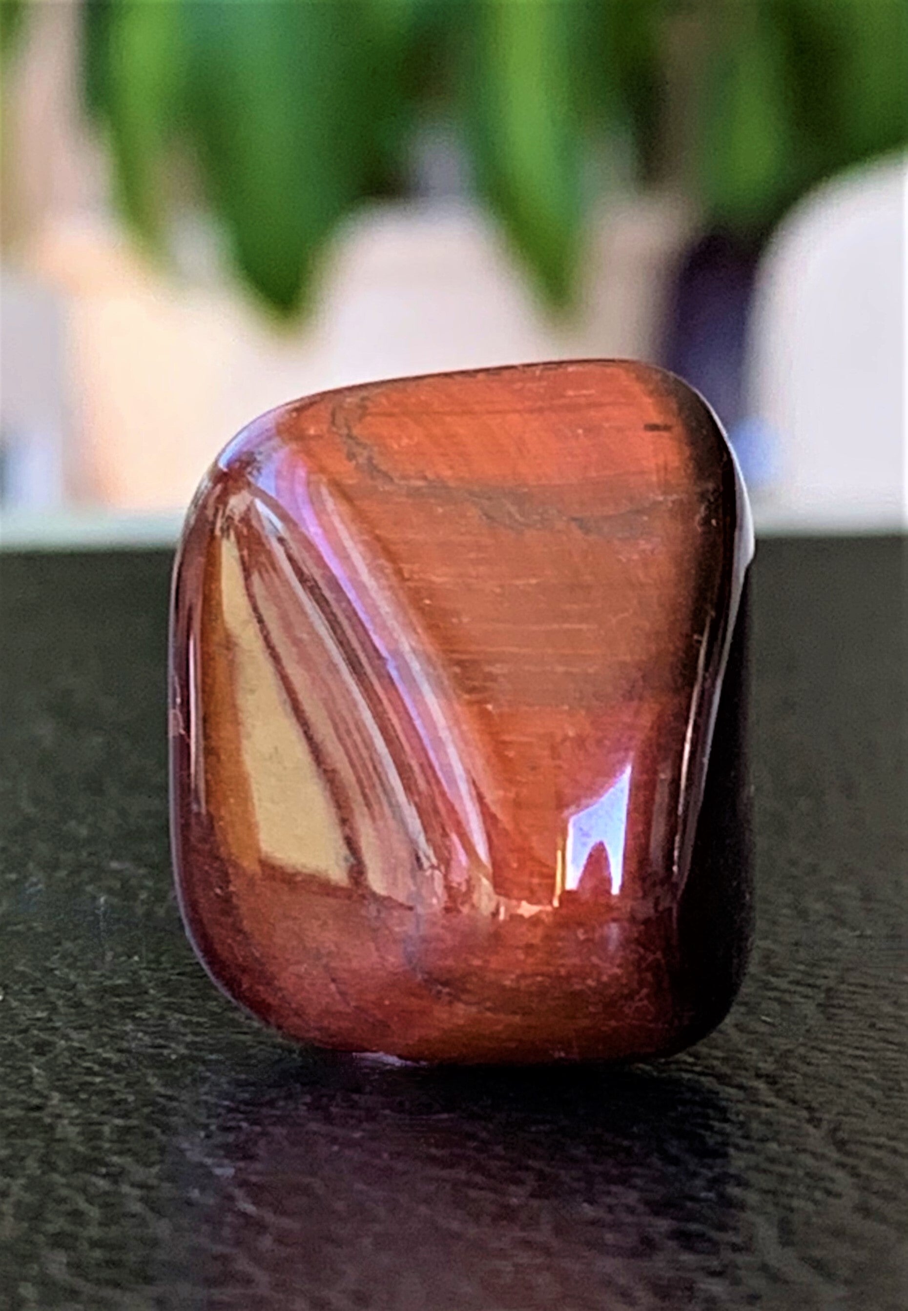 Rode Tijgeroog vergroot, naast de algemene eigenschappen van Tijgeroog, je energie, kracht, vitaliteit en wilskracht. Het werkt nog sterker aardend dan de Gouden Tijgeroog variant en helpt Kundalini-energie opstijgen.