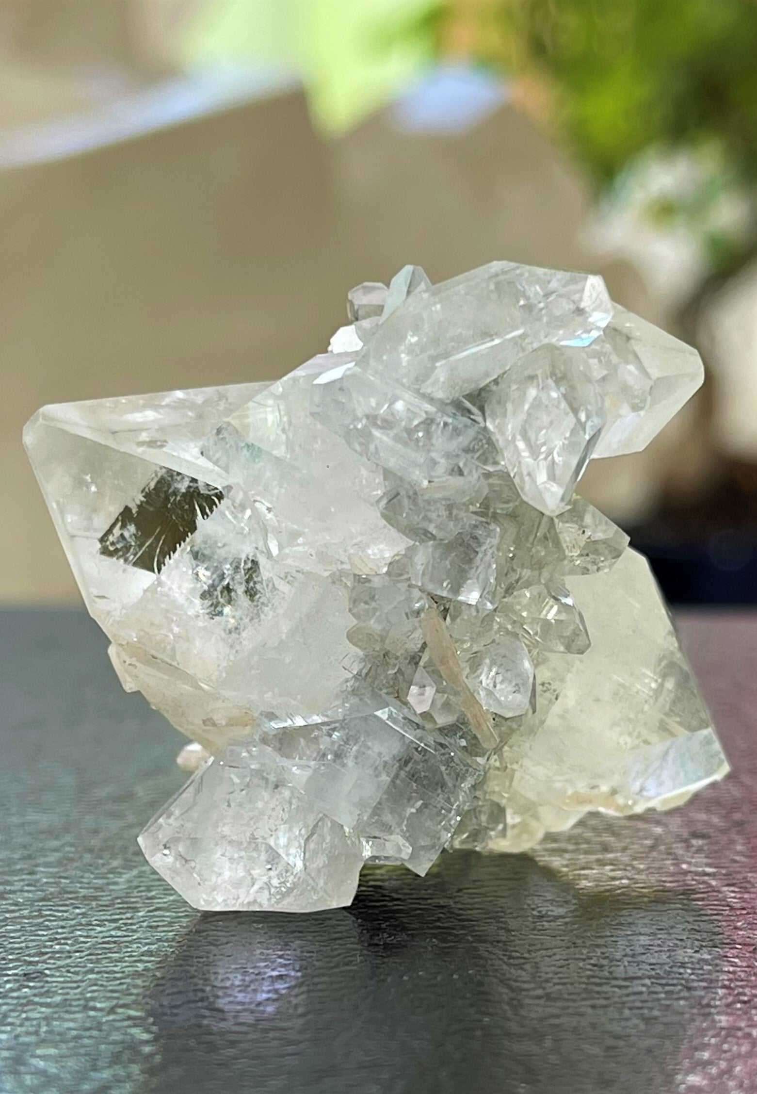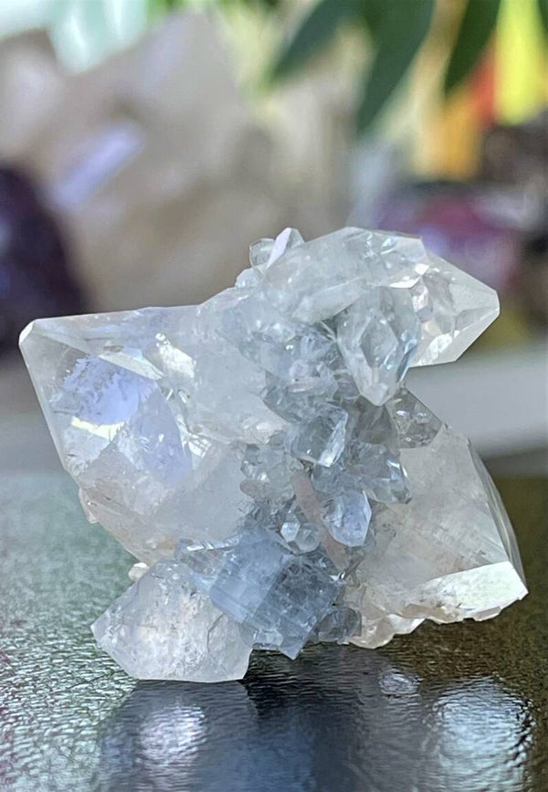 Apofylliet is ook een hele spirituele steen. Het helpt bij de geleiding van energieën en kan daarom heel goed gebruikt worden bij healings en energetisch werk zoals bijvoorbeeld reiki en quantum touch. Mediteren met deze steen geeft spirituele inzichten en kennis. Het werkt aardend bij astraal reizen.