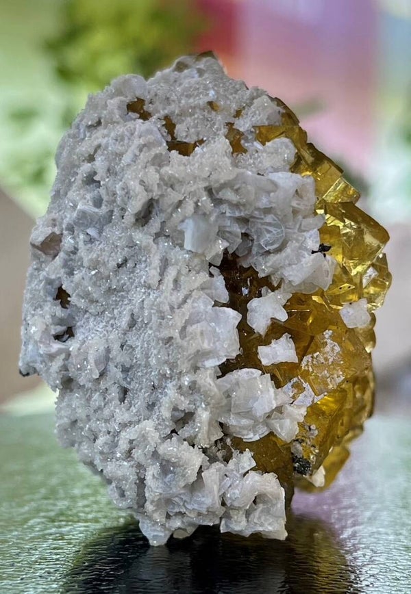 Fluoriet werkt beschermend, reinigend en stabiliserend. Beschermt tegen negatieve energie, straling van bijvoorbeeld mobiele telefoons en computers en andere negatieve invloeden van buitenaf.