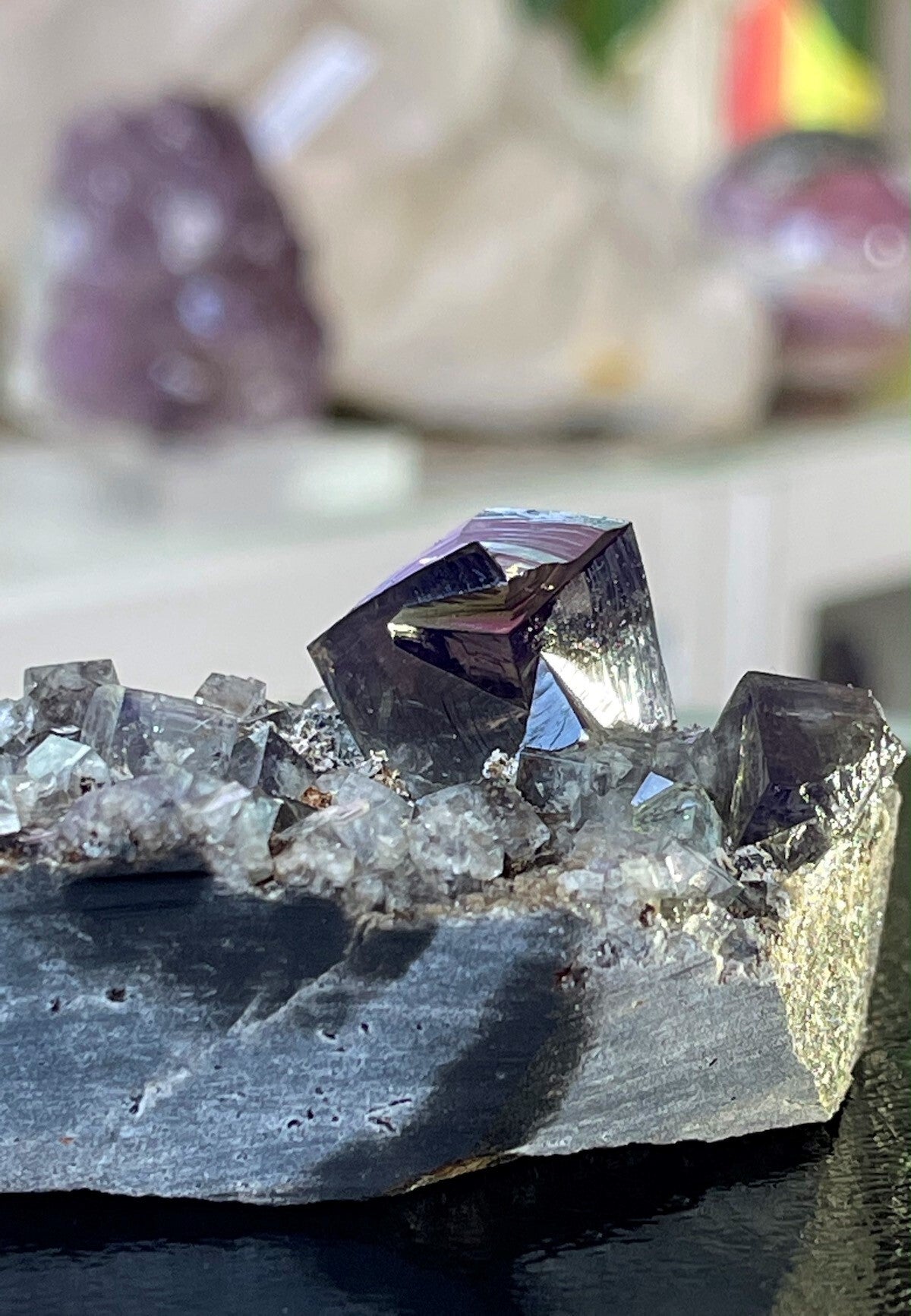 De kleur van de Fluoriet wijzigt bij daglicht in diep blauw en paars