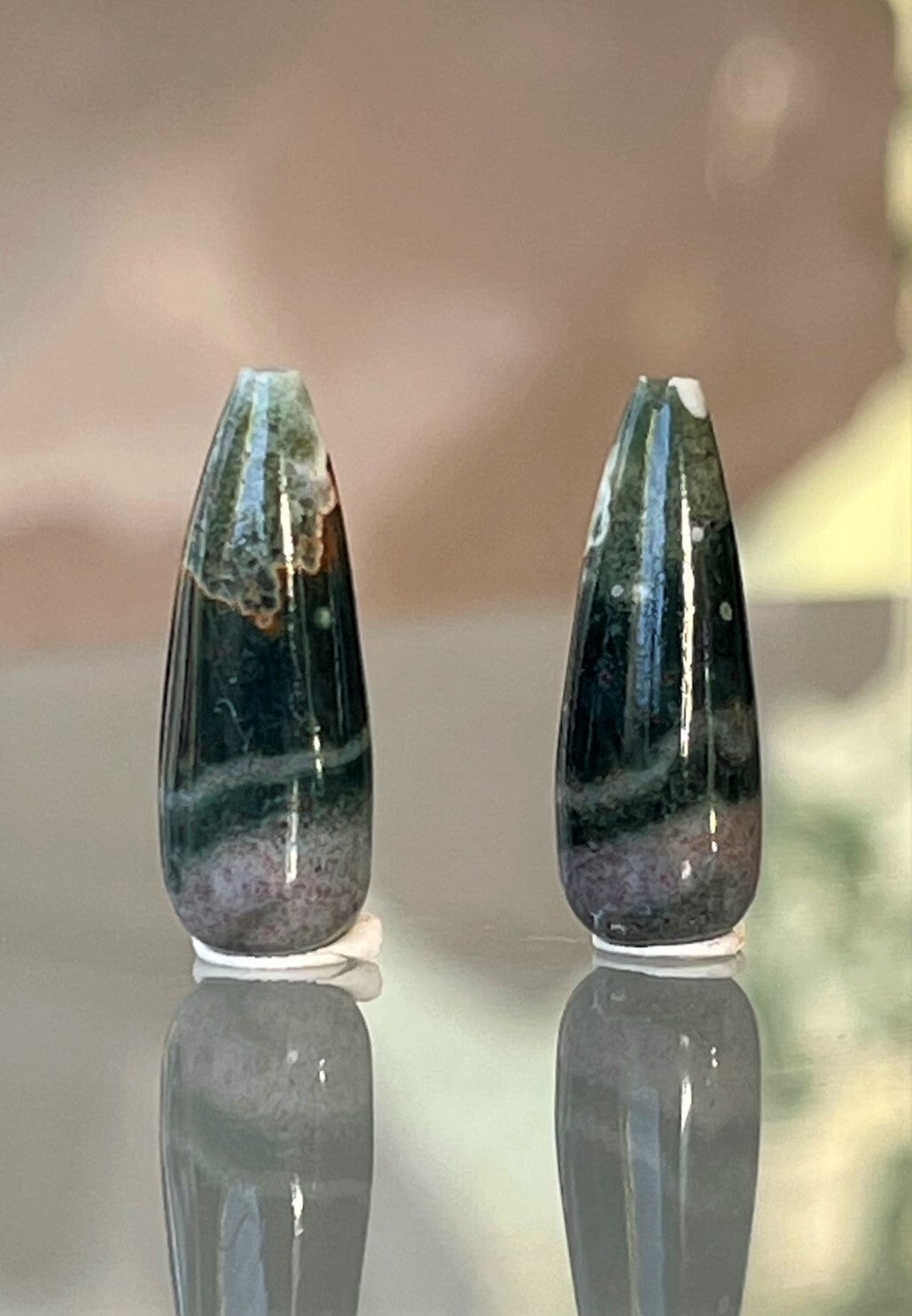 Oceaan Jaspis edelstenen cabochon langwerpige druppels, per paar, set van 2