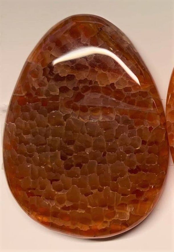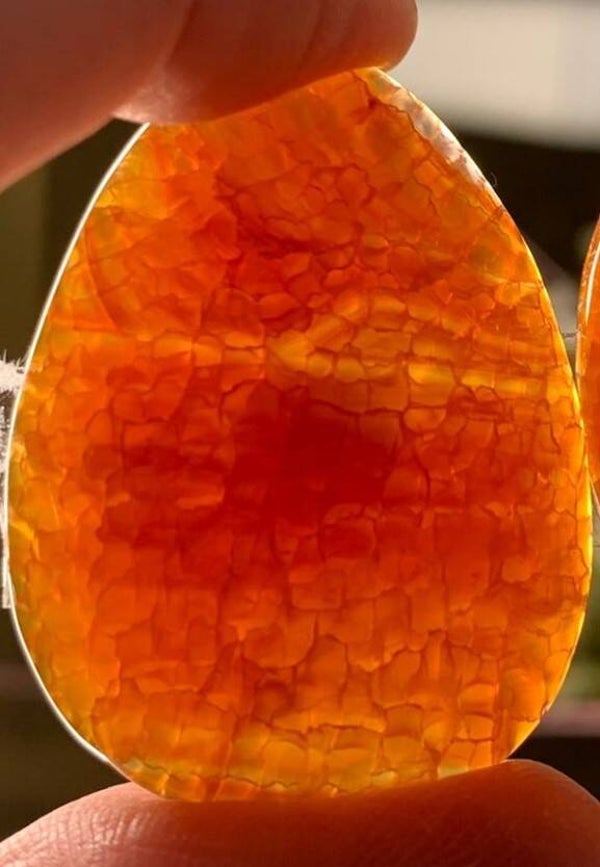 Vuuragaat edelsteen cabochon met vlakke achterkant, soort druppel, medium (Fire Crackle Agaat)