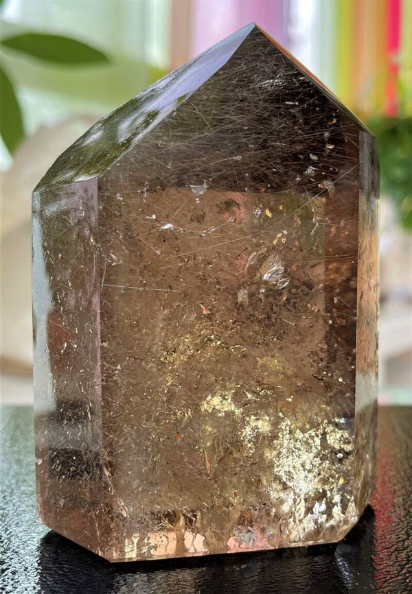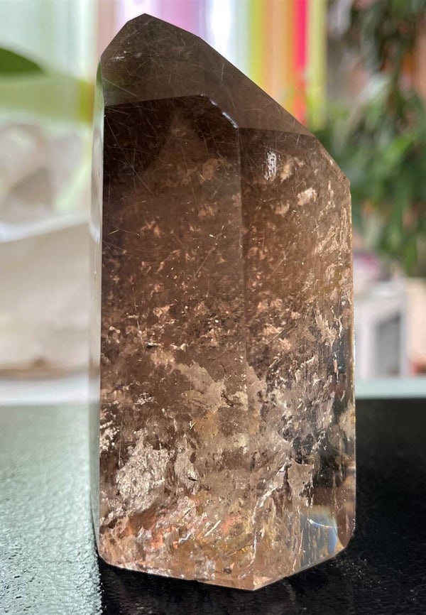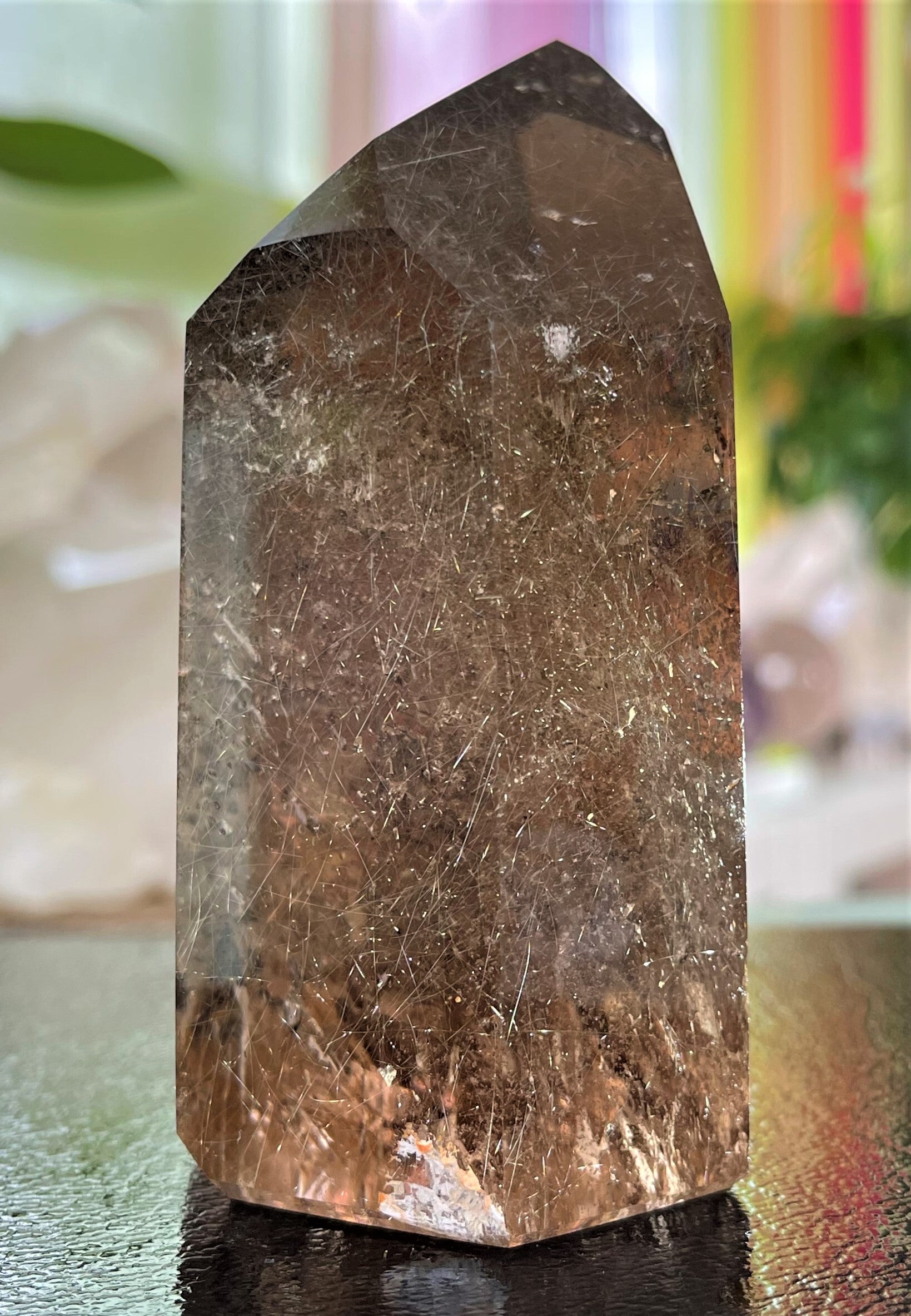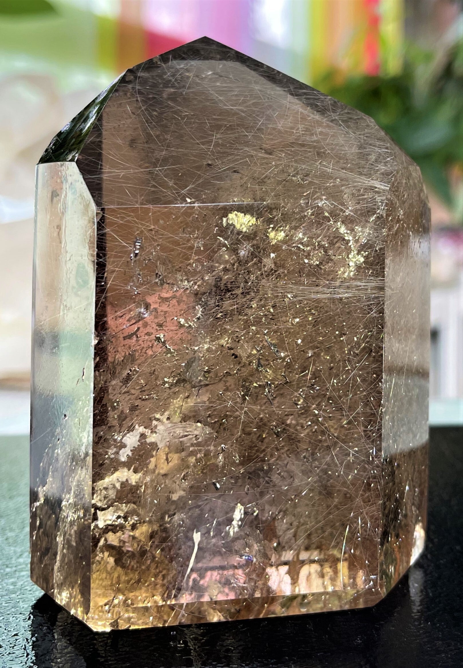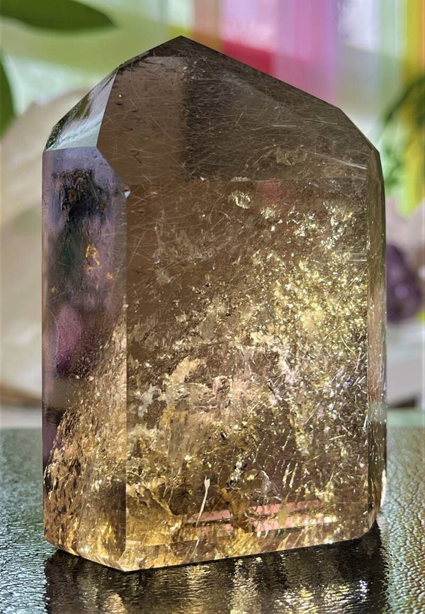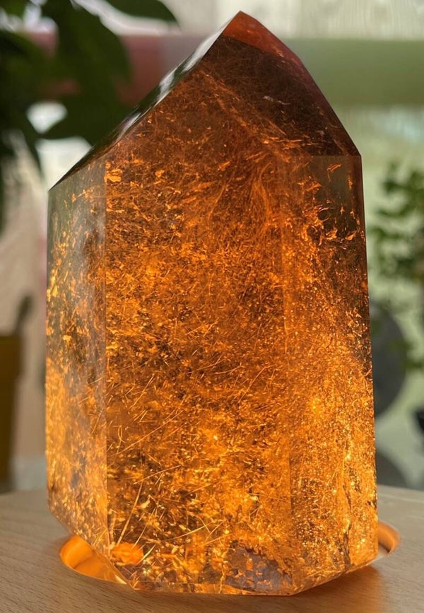 Citrien met Rutielkwarts punt uit Brazilië, gepolijst