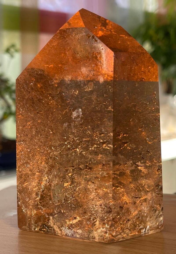 Citrien met Rutielkwarts gepolijste heldere punt uit Brazilië, 6 vlakken.