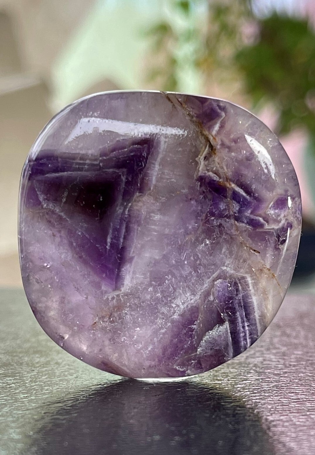 Chevron Amethist of Band Amethist platte knuffelsteen of zaksteen, groot