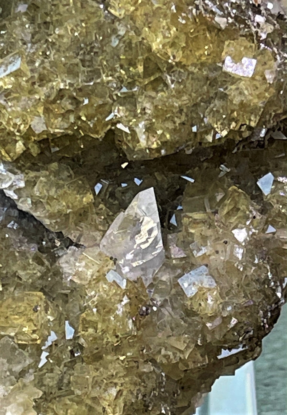 Ruw stukje gele Fluoriet met Dolomiet en Calciet uit Mina Moscona, Asturias Spanje, medium