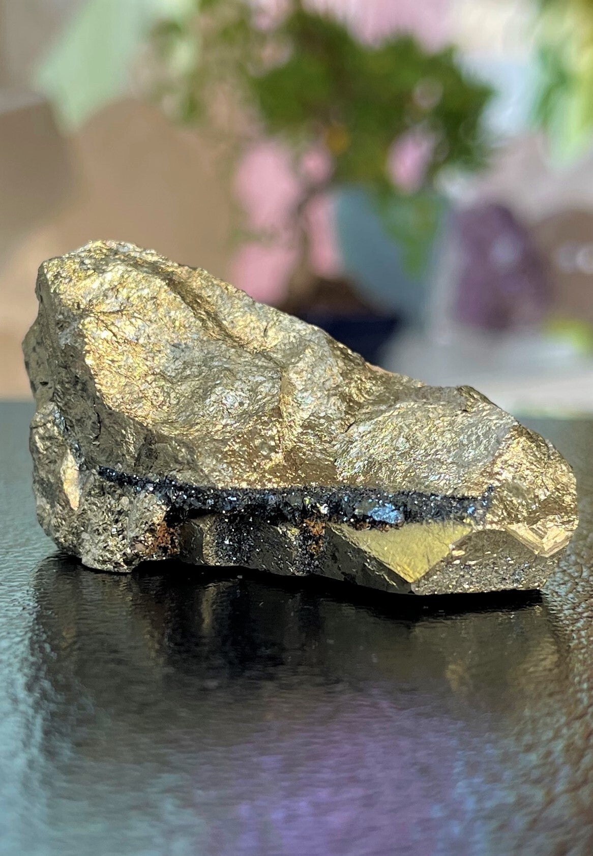 Pyriet is een sterk inzichtgevende steen en bevordert hierdoor zelfkennis, zelfvertrouwen, wilskracht en eigenwaarde. De steen leert je om te accepteren wie je bent. Openheid en eerlijkheid naar jezelf.