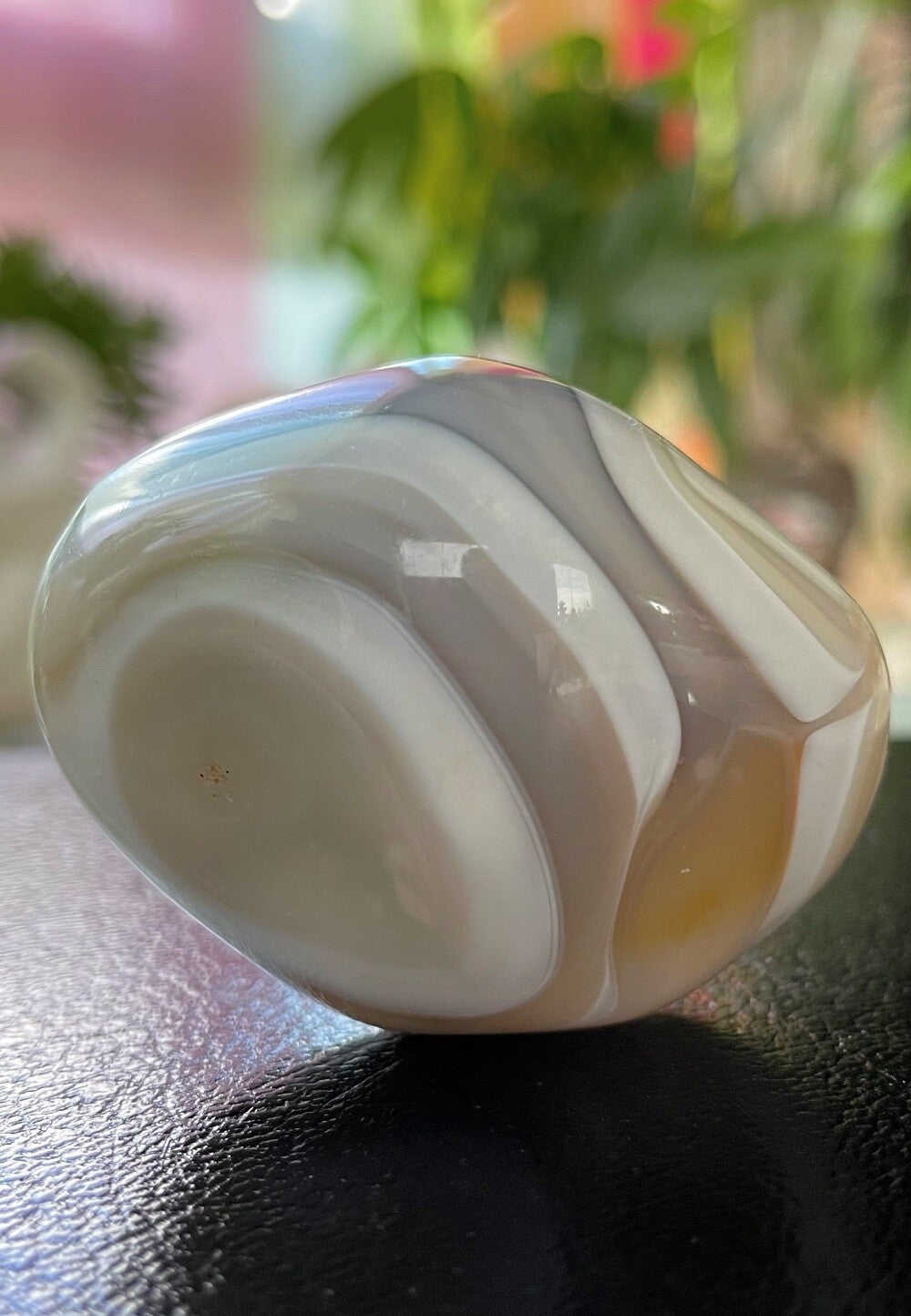 Botswana Agaat werkt, naast de algemene eigenschappen van Agaat beschermend en troostend. Het ondersteunt bij emotionele pijn, eenzaamheid, stress, piekeren en depressieve gedachten. Het helpt angst en obsessieve gedachten loslaten.