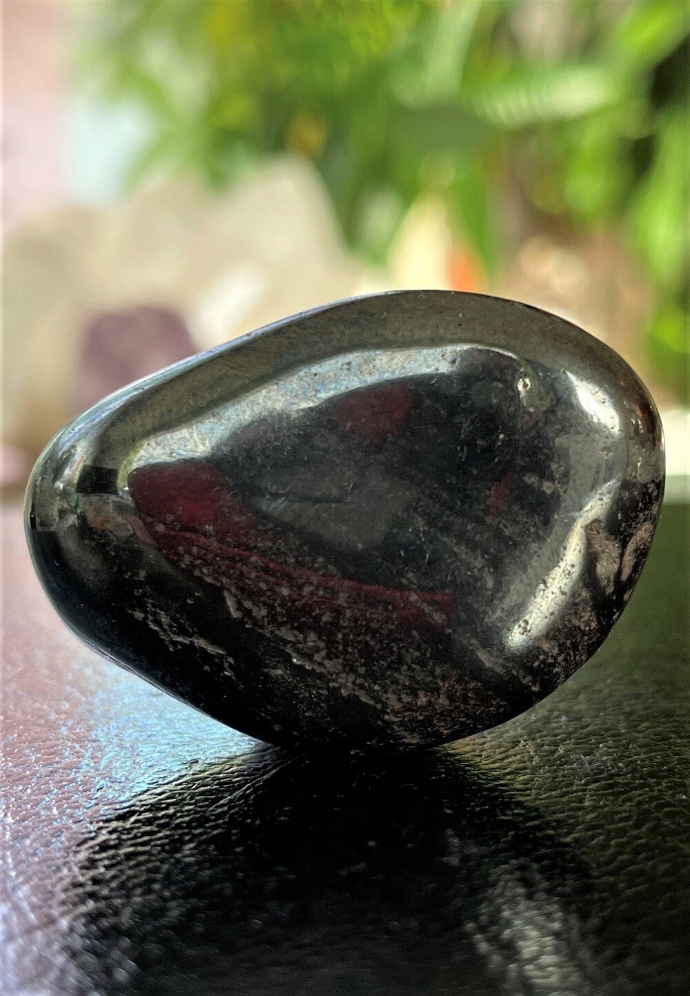 Hematiet is een sterk aardende, zuiverende en beschermende steen. Het absorbeert negatieve energie en (elektromagnetische) straling en laat dit de aarde instromen. Het zuivert en stabiliseert de aura en chakra’s en brengt hierdoor balans en brengt lichaam, geest en ziel in harmonie met elkaar.
