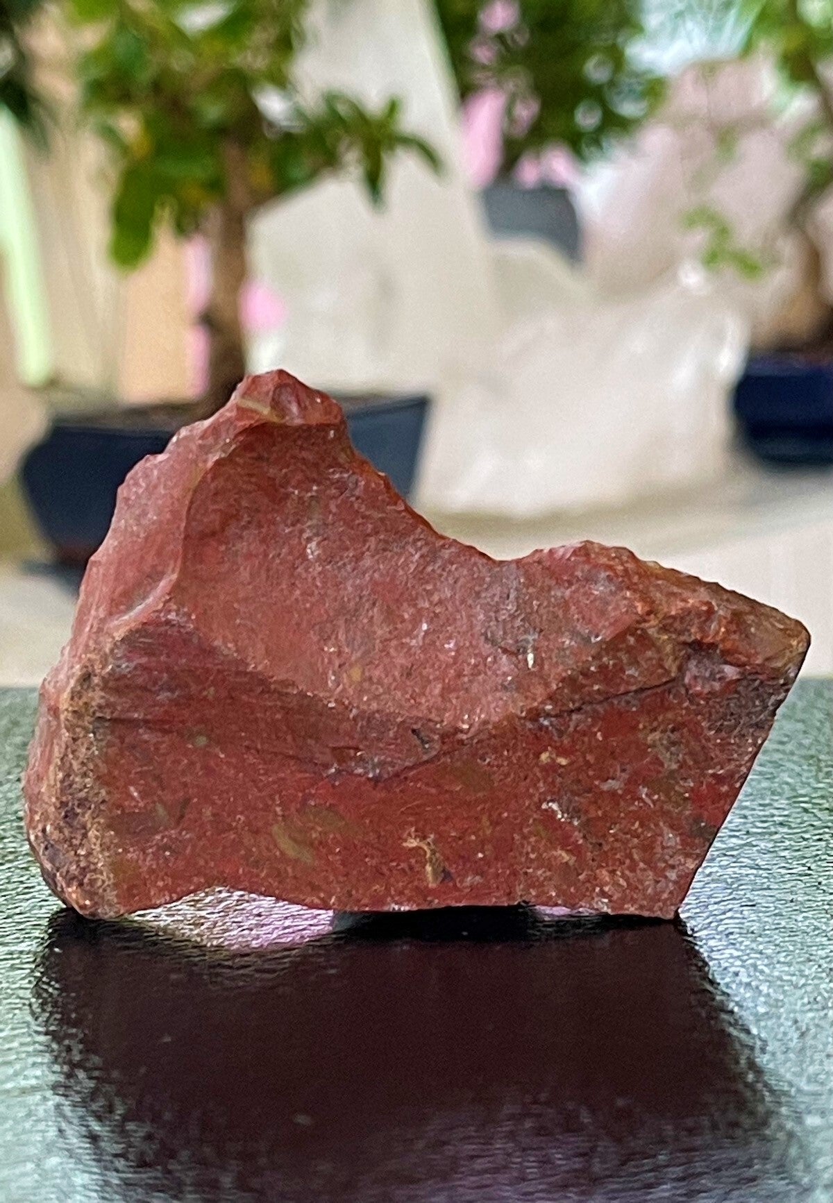 Rode Jaspis ruw stukje, aan één zijde gepolijst, medium