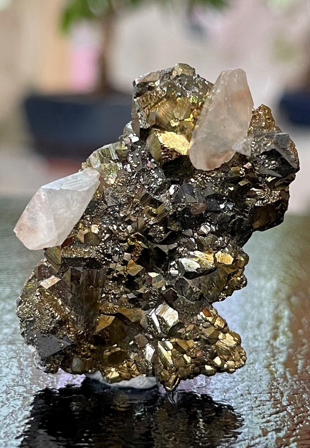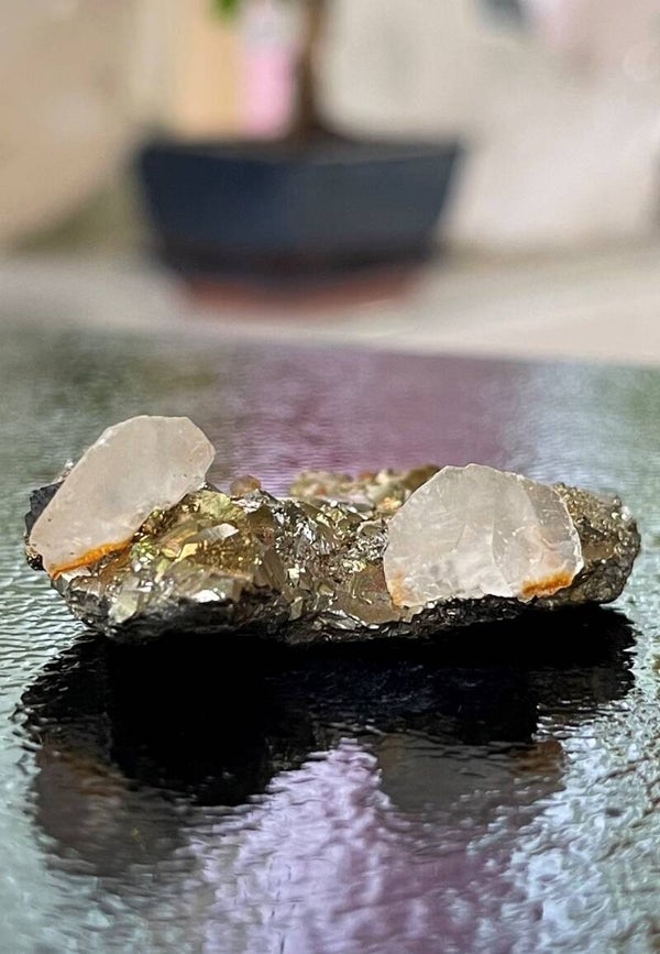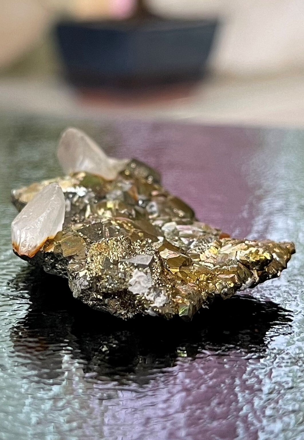 Prachtig ruw stukje Pyriet met Calciet uit Trepca, Kosovo, klein