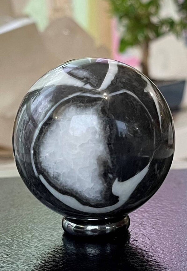 Fossiel Jaspis bol (ook Yin Yang Jaspis genoemd), medium, prachtige kwaliteit met kwarts