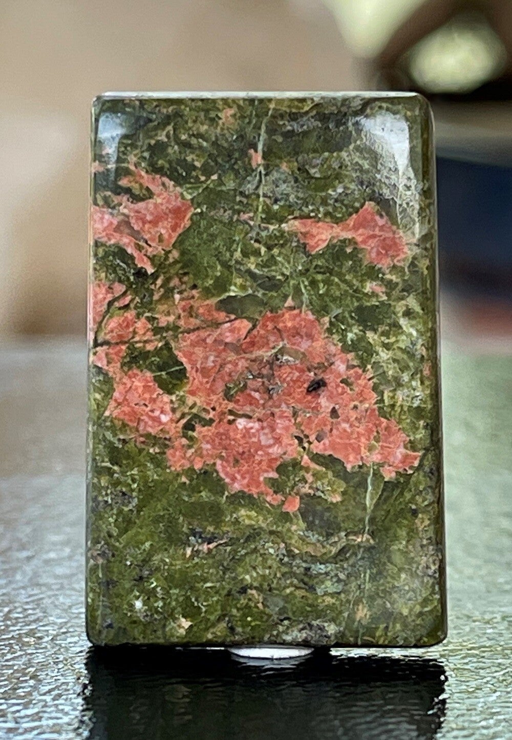Unakiet platte knuffelsteen of zaksteen, rechthoekig met vlakke achterkant