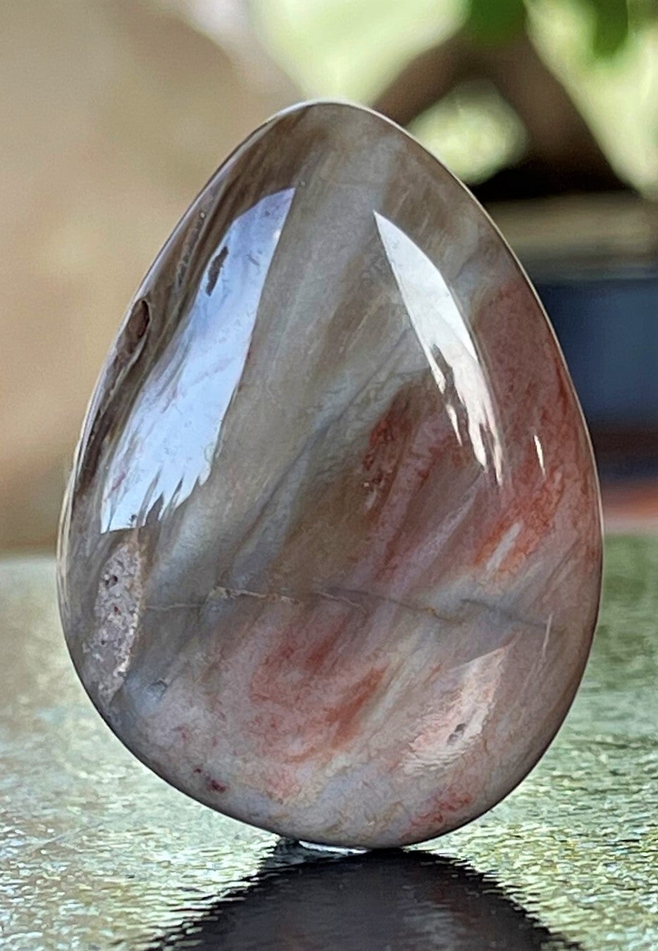 Versteend Hout platte knuffelsteen of zaksteen uit Australië