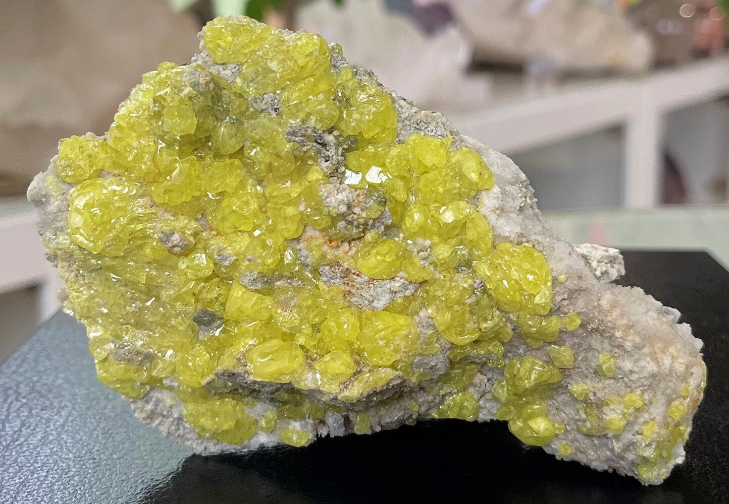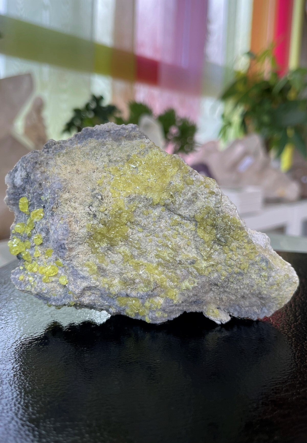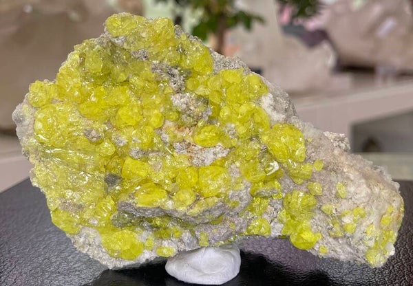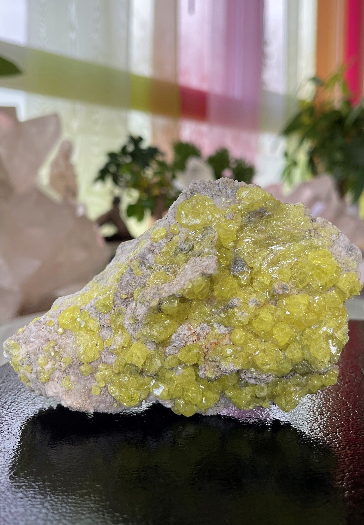 Zwavelkwarts werkt zuiverend, beschermend en vitaliserend. De steen neemt negatieve energie in alle vormen in zich op en werkt hierdoor zuiverend op alle niveaus.