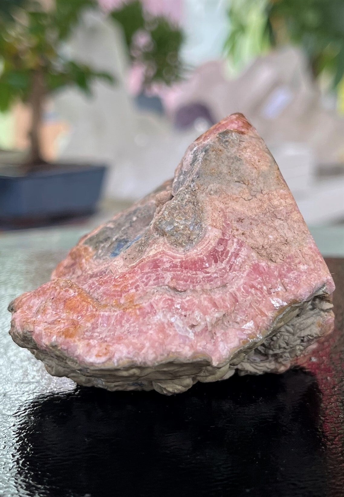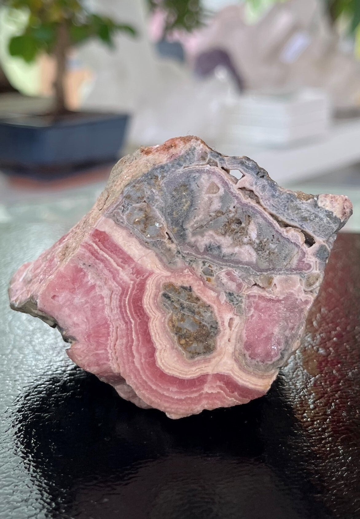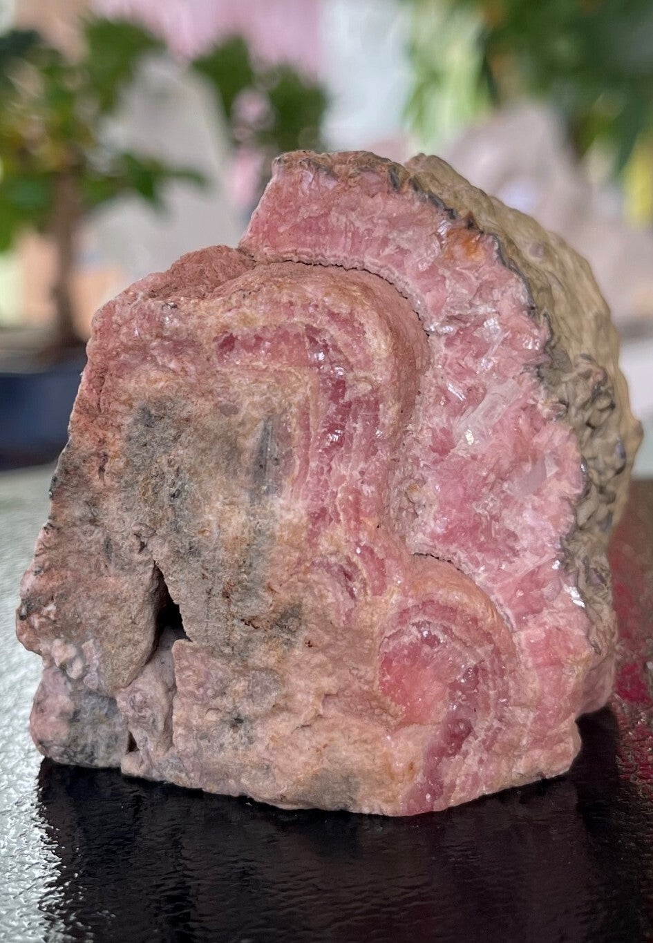 Ruw stukje Rhodochrosiet uit Catamarca Argentinië, aan één zijde mat gepolijst, medium