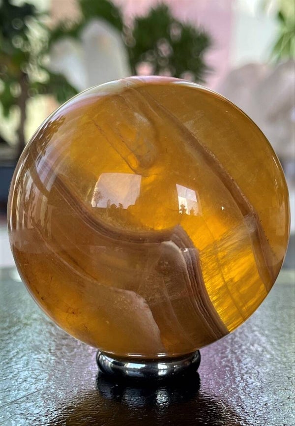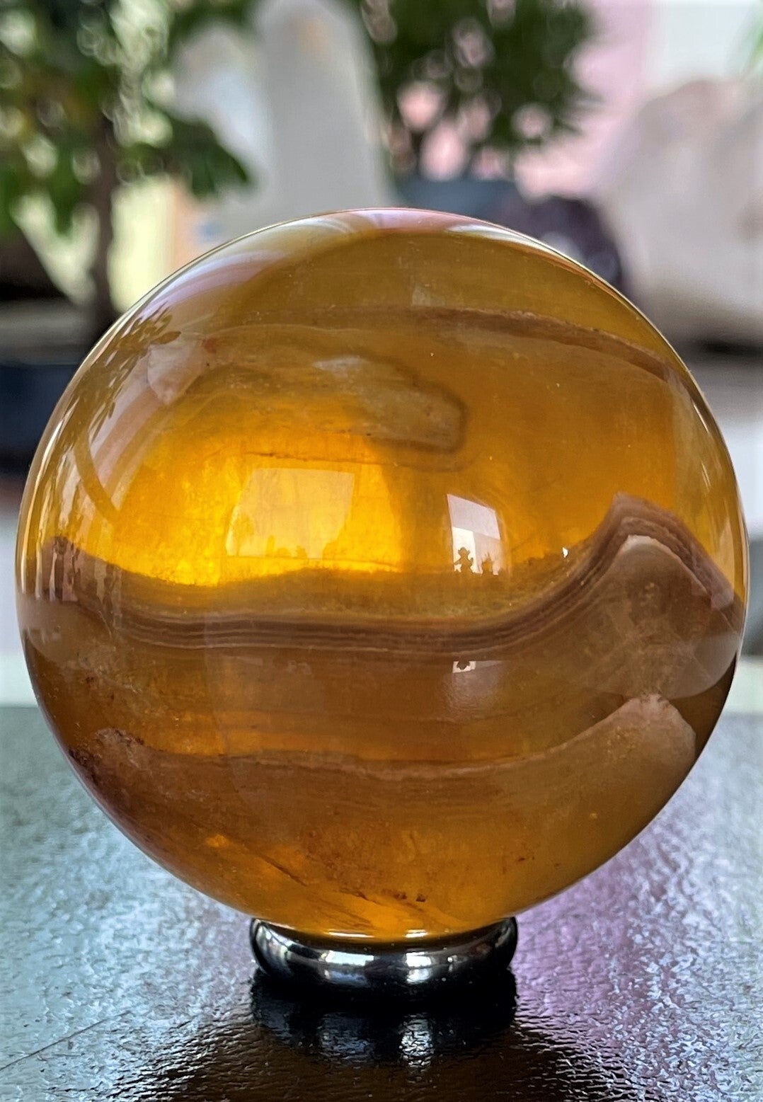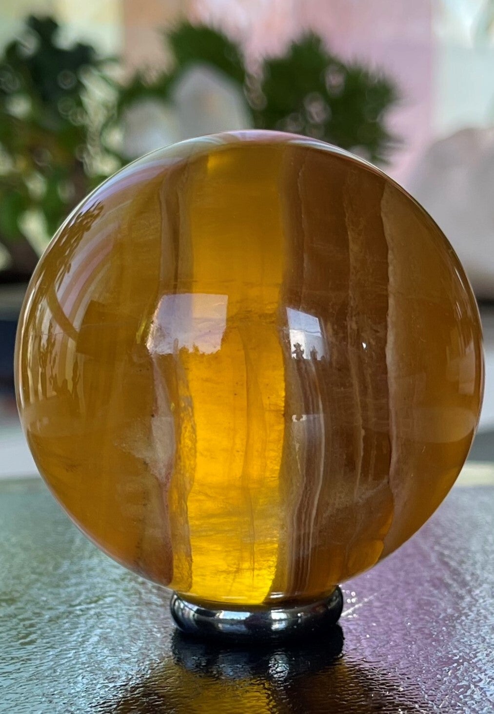 Prachtige heldere gele Fluoriet bol, medium tot groot